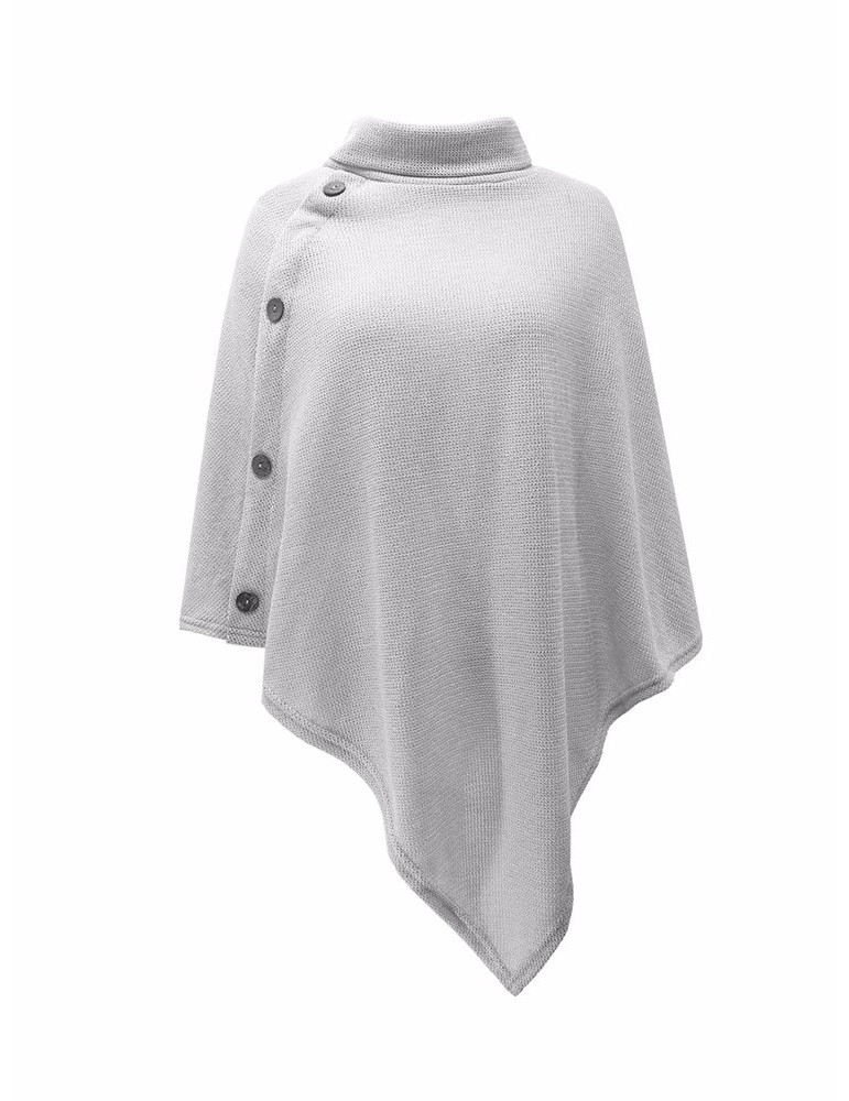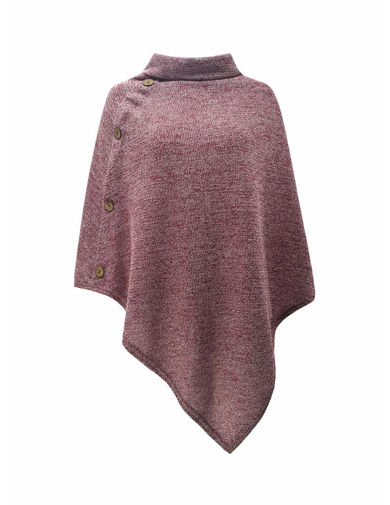 Loose Asymmetrical Hem Button Sleeve Turtleneck Sweater