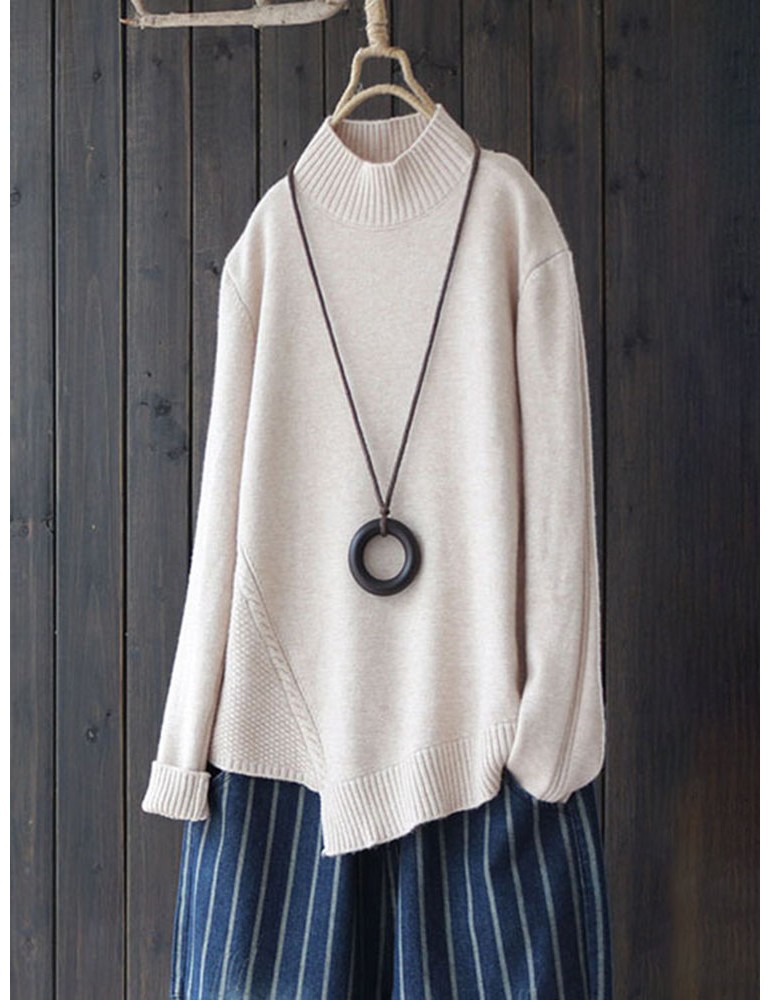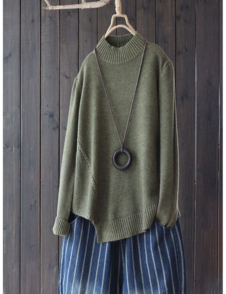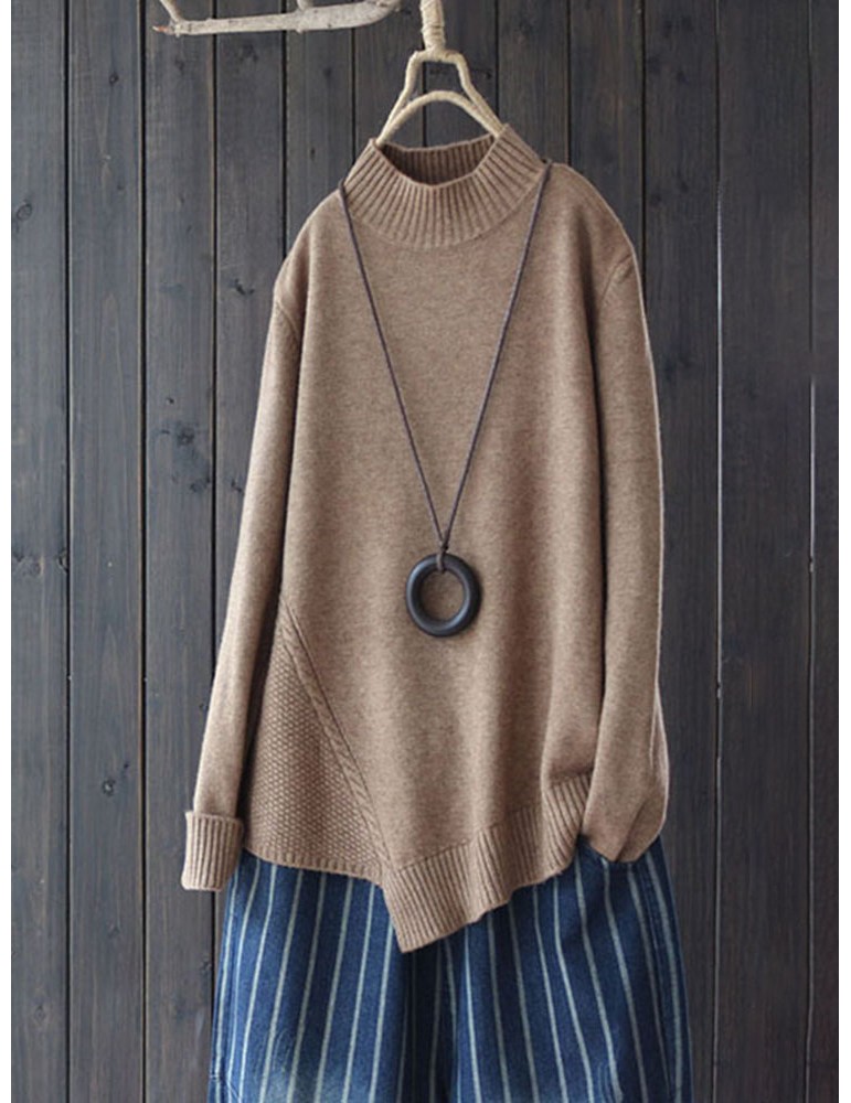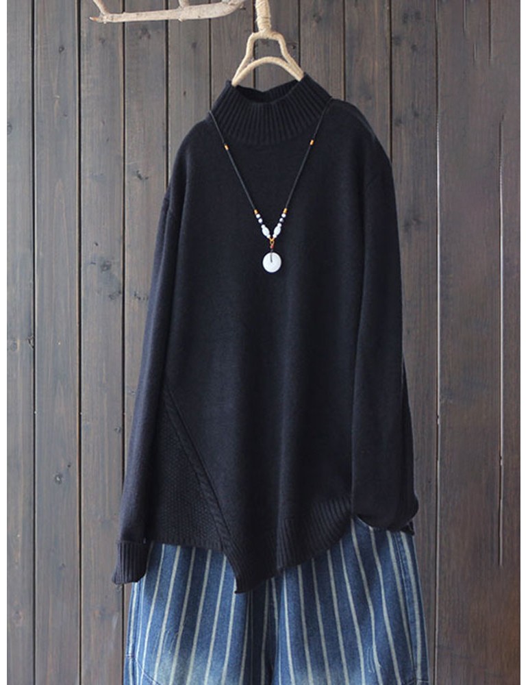 Irregular Solid Color Turtleneck Long Sleeve Women Sweater
