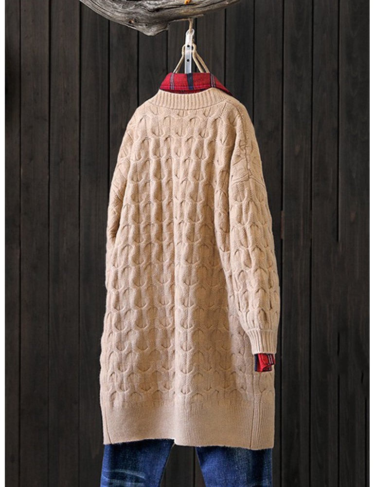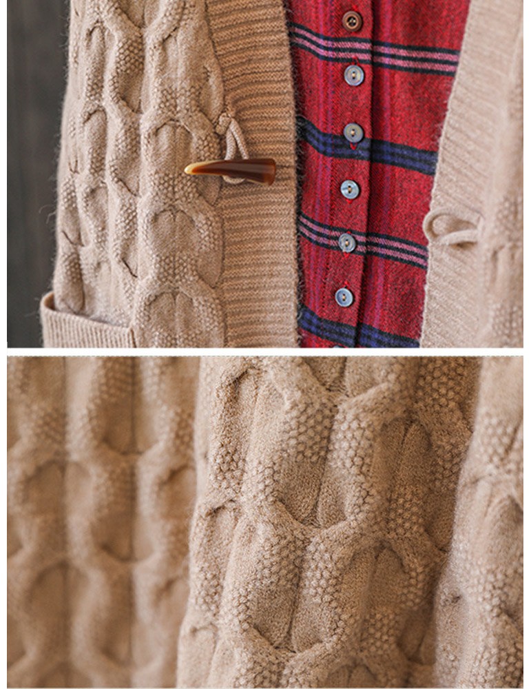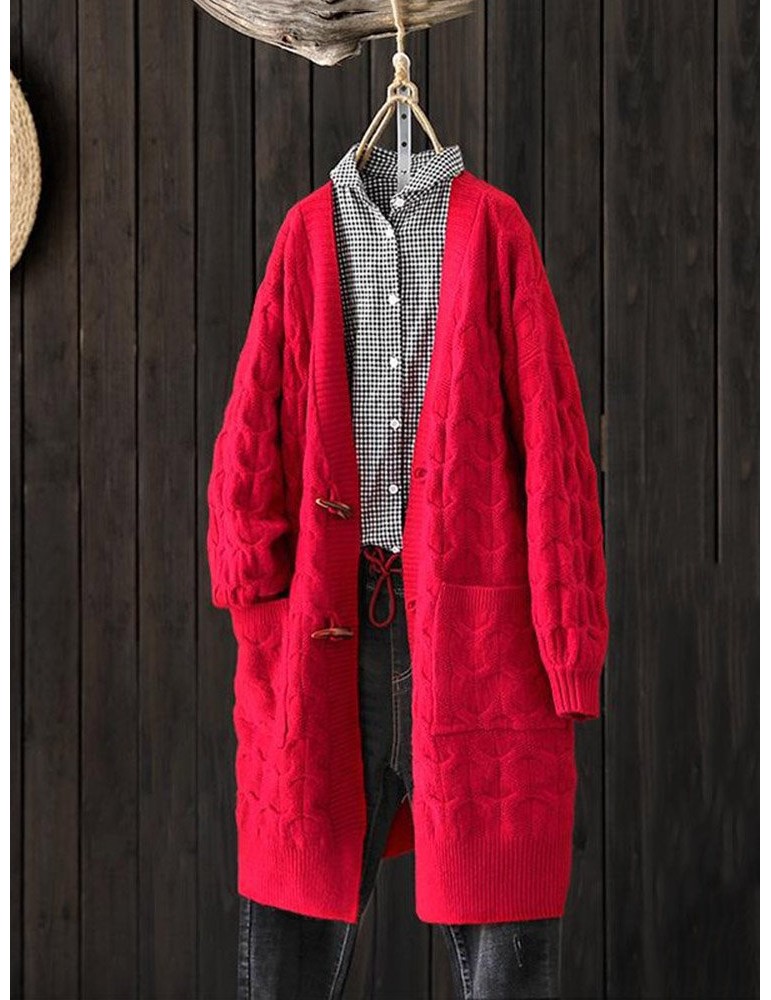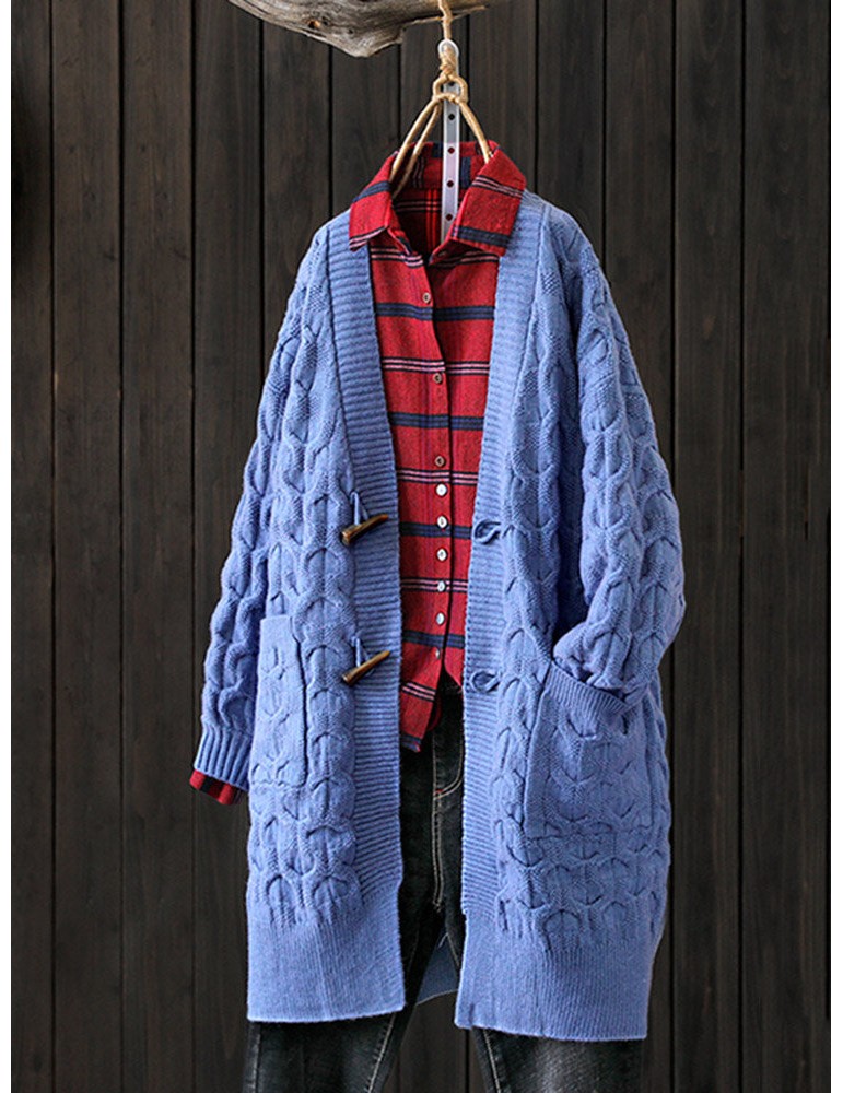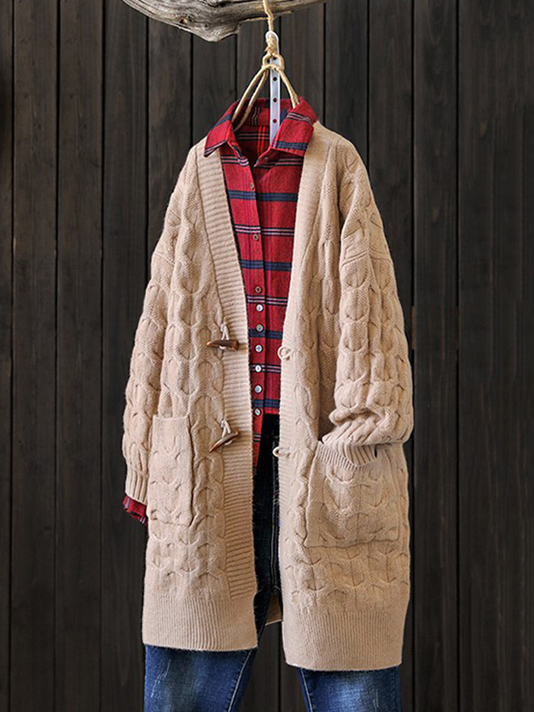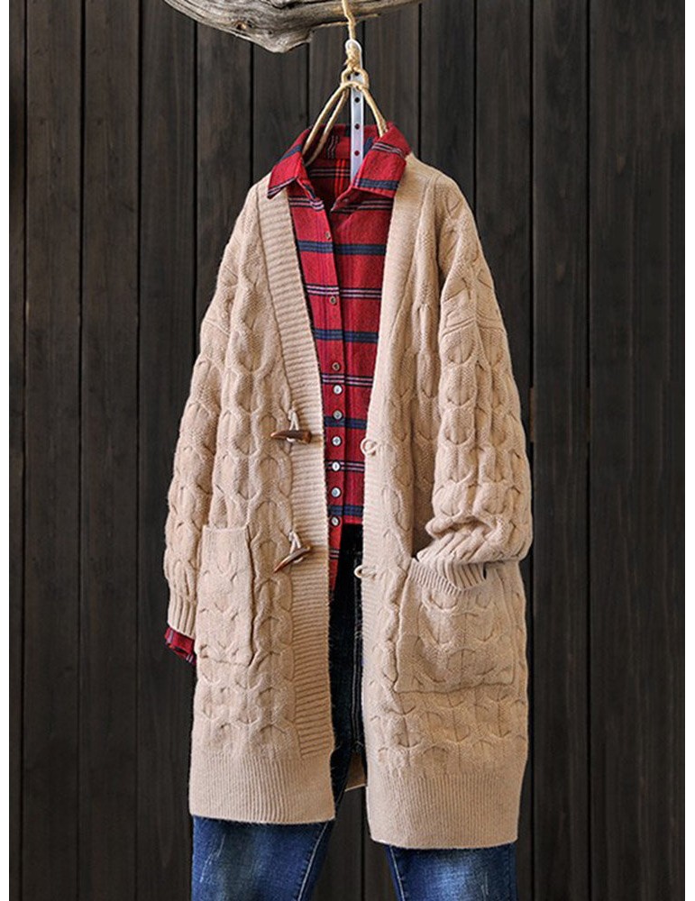 Horns Buckle Solid Color Long Sleeve Casual Cardigan