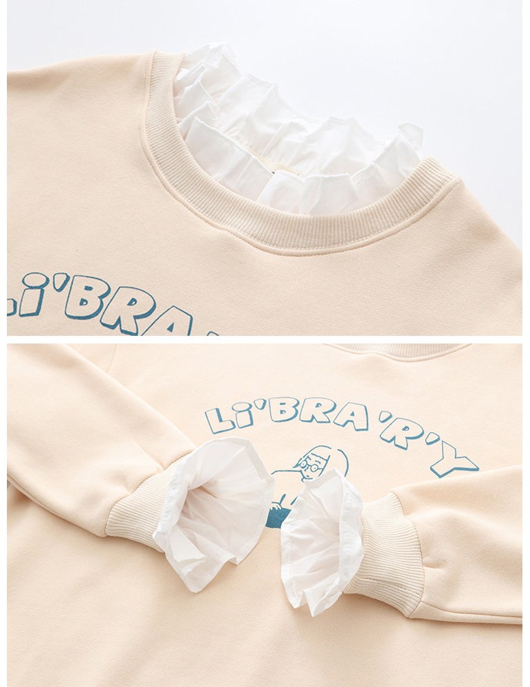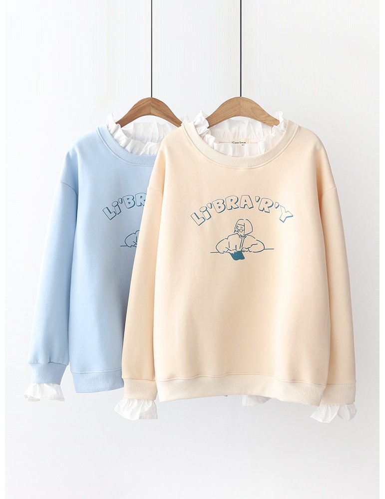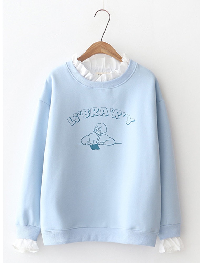 Casual Print Ruffle Neck Long Sleeve Sweatshirt