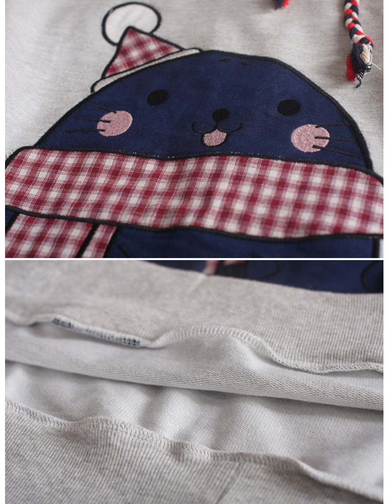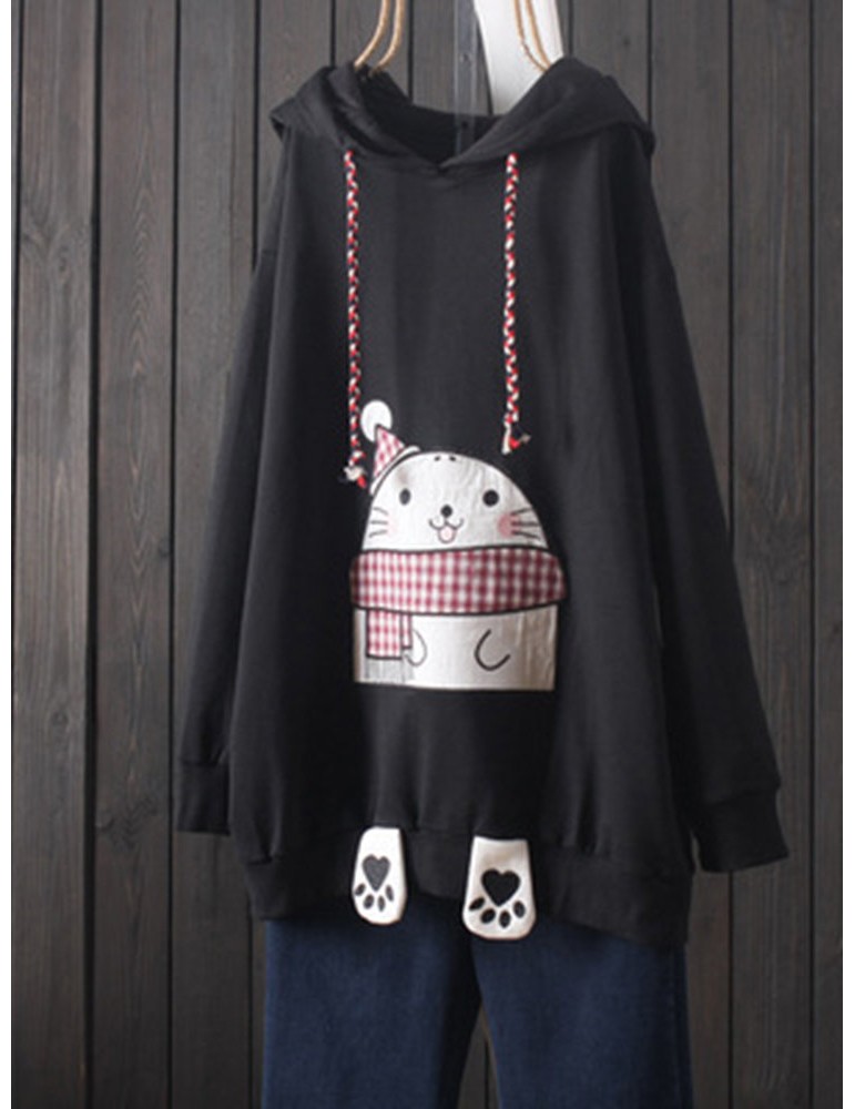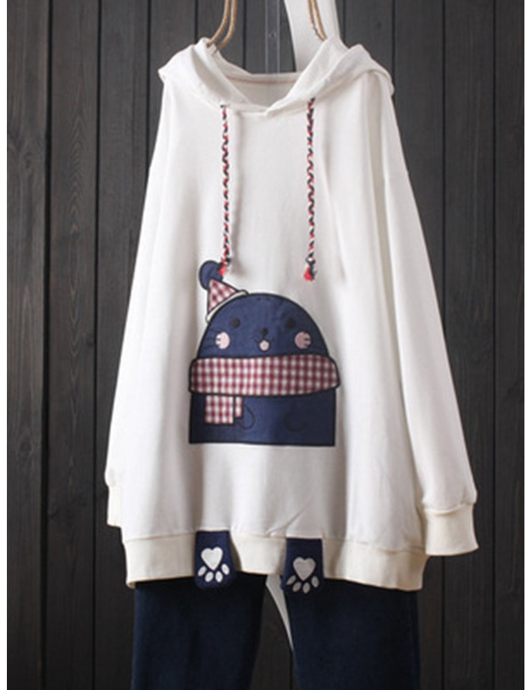 Drawstring Cartoon Embroidered Long Sleeve Women Hoodie