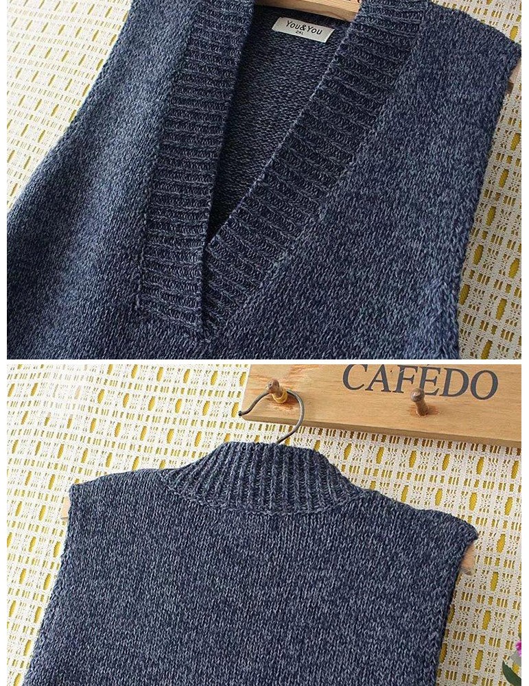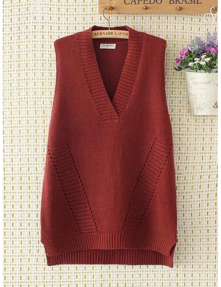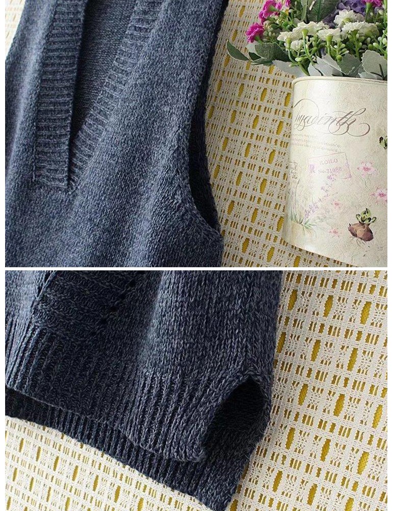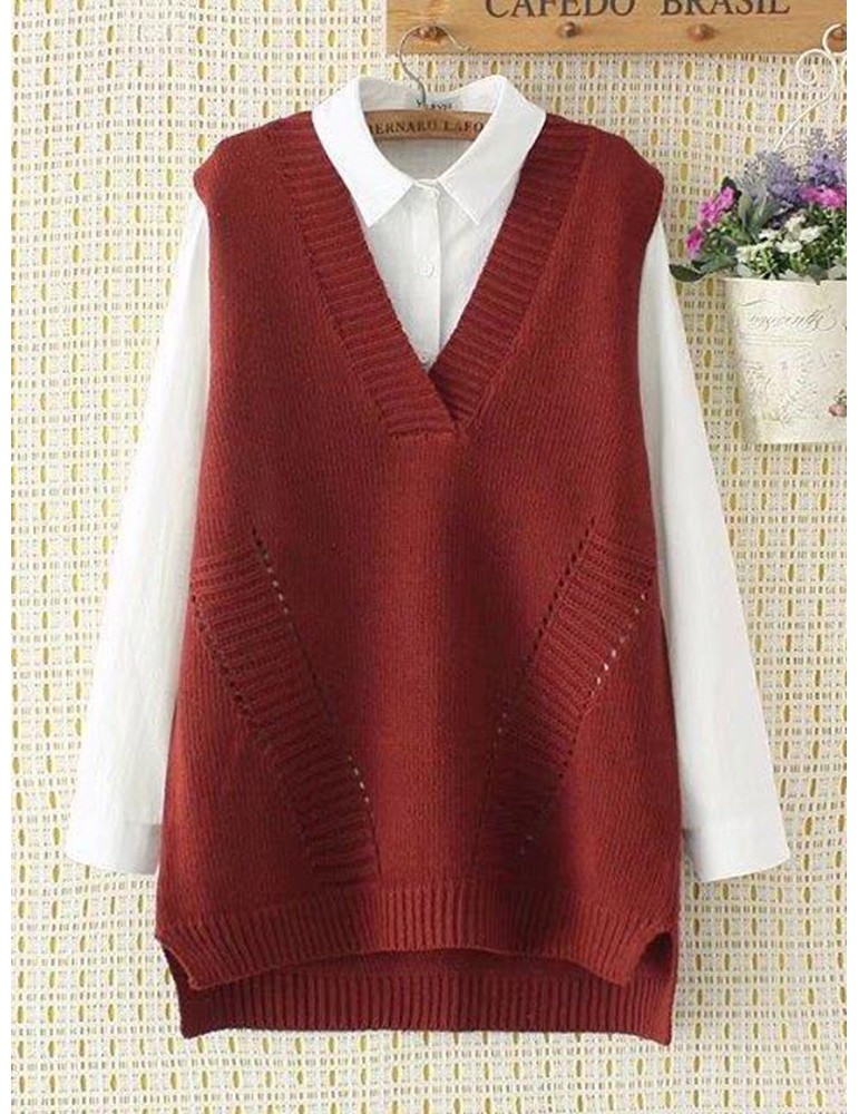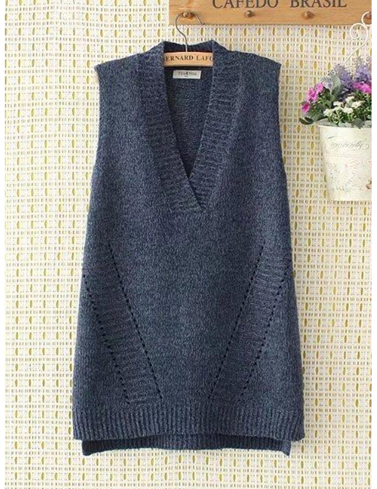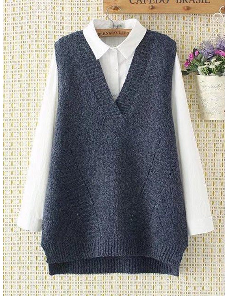 Asymmetrical Hem V Neck Solid Color Overhead Vest Sweater