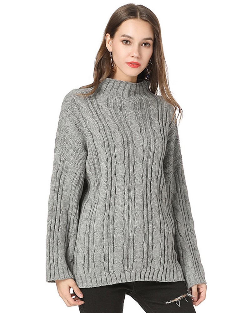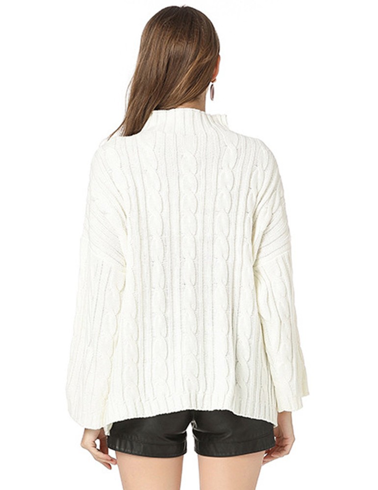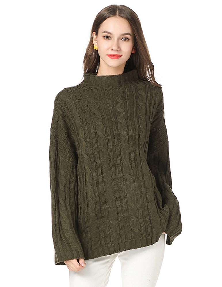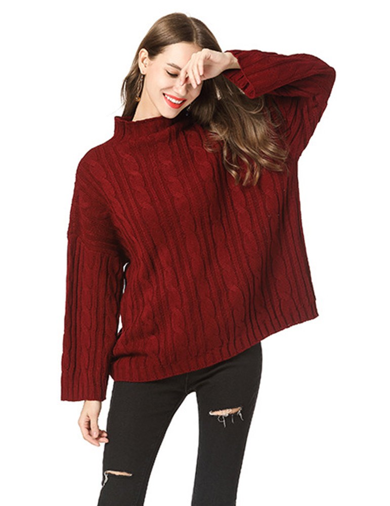 Casual Solid Color High Neck Sweaters for Women
