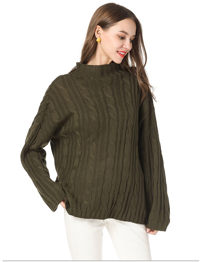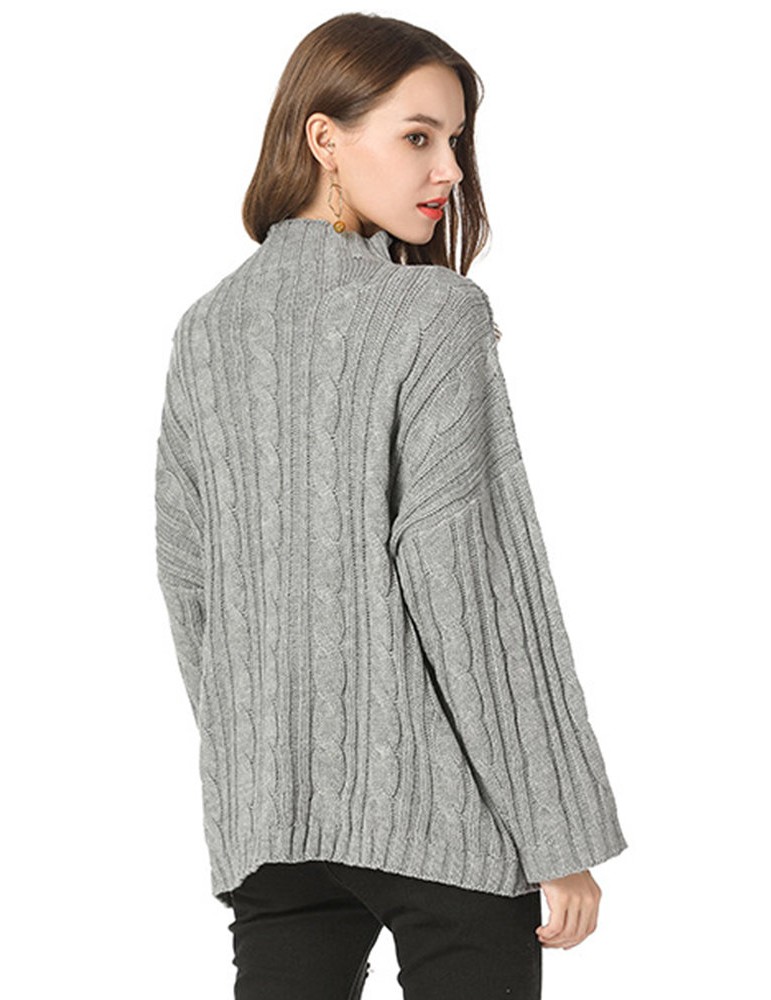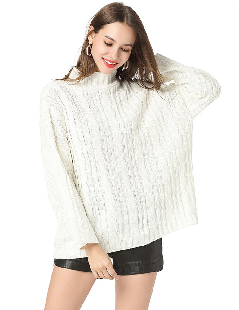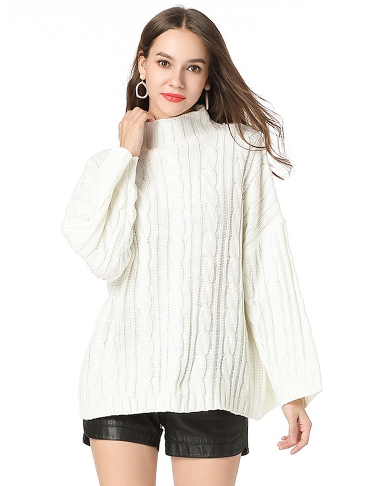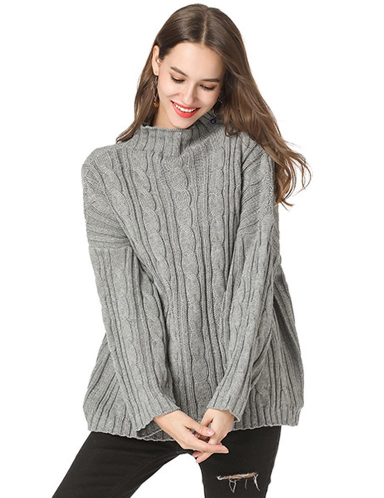 Casual Solid Color High Neck Sweaters for Women