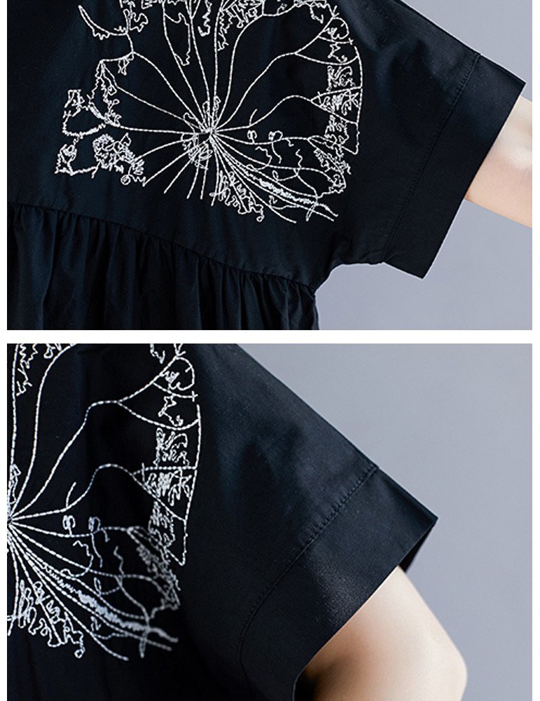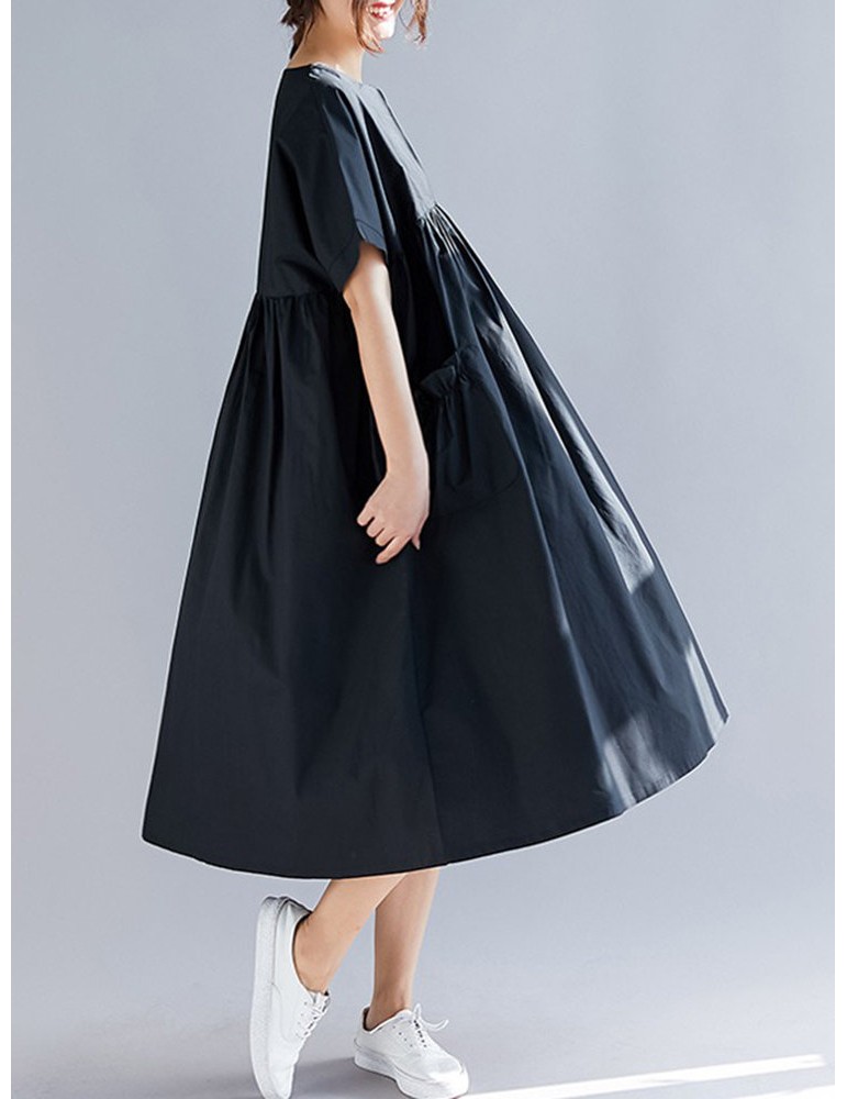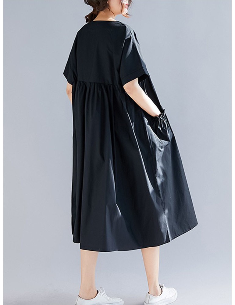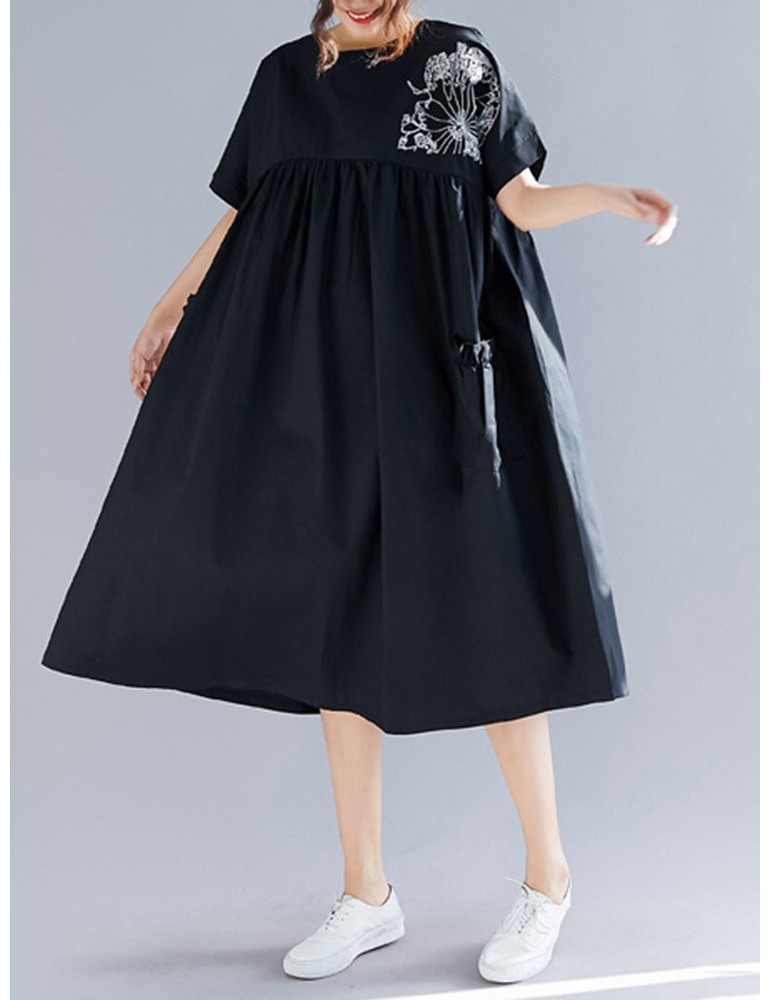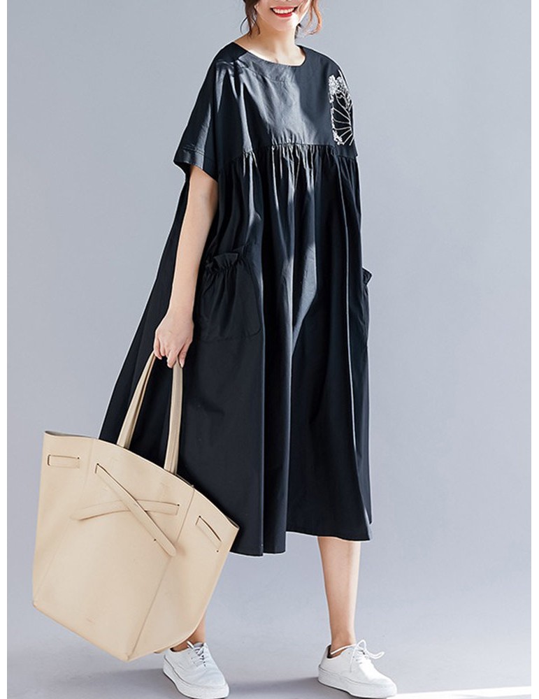 Casual Print Pocket Short Sleeve Loose Dress