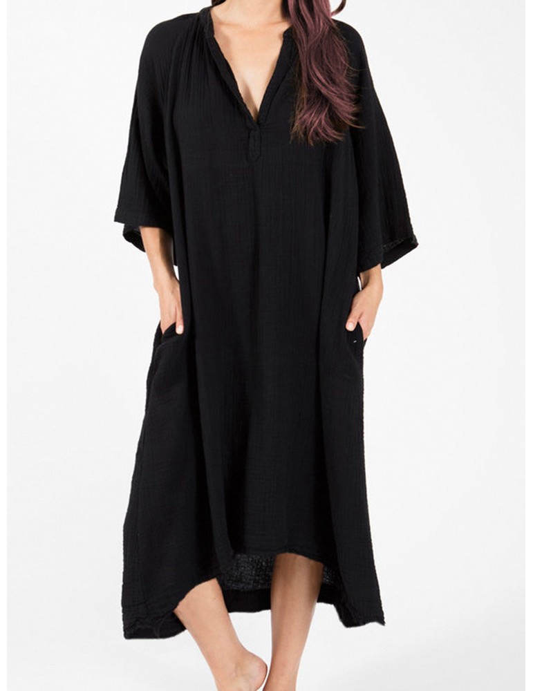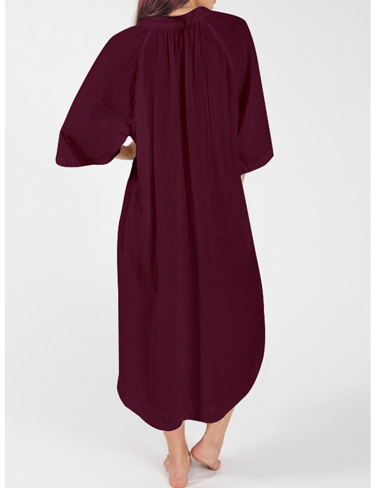 Casual V-neck 3/4 Sleeve High Low Loose Plus Size Dress