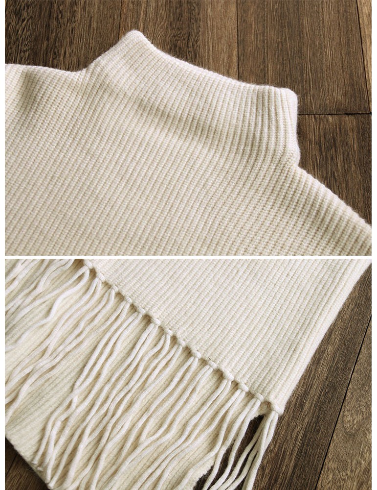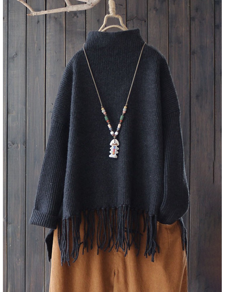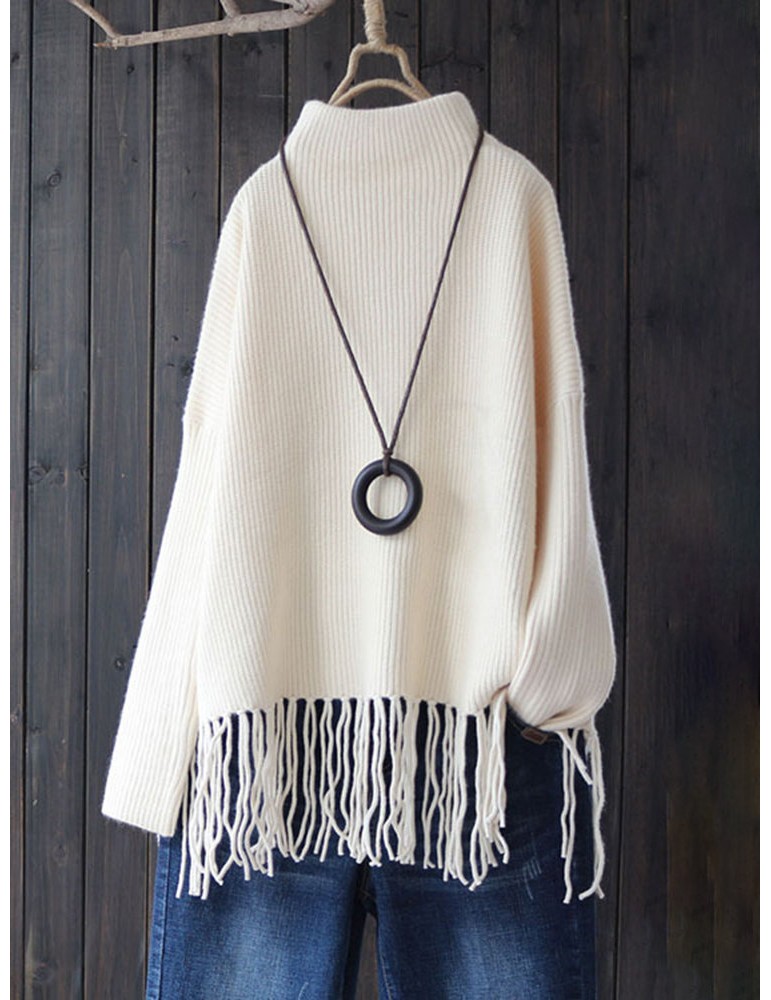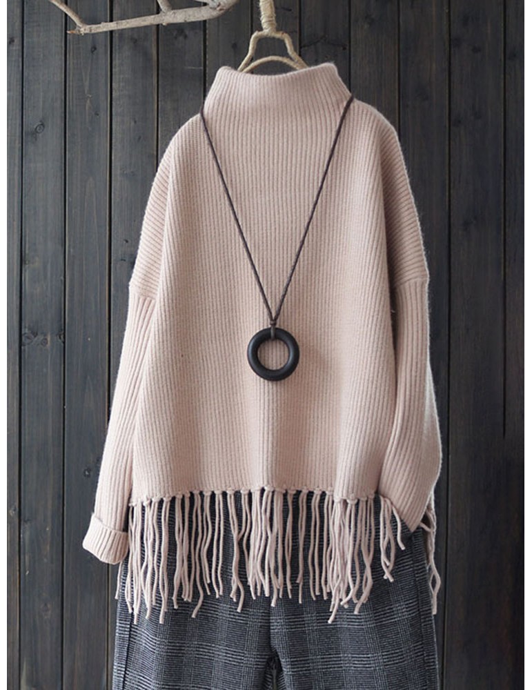 Casual Turtleneck Tassel Hem Thick Long Sweater for Women