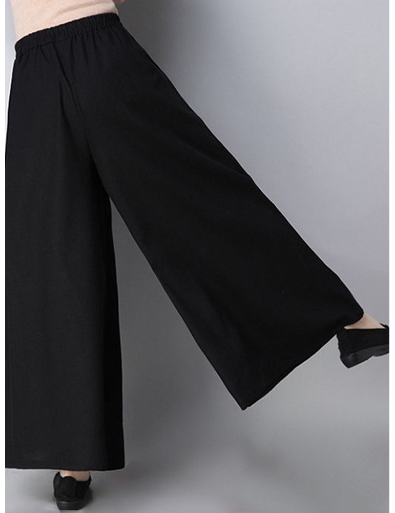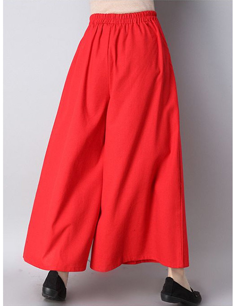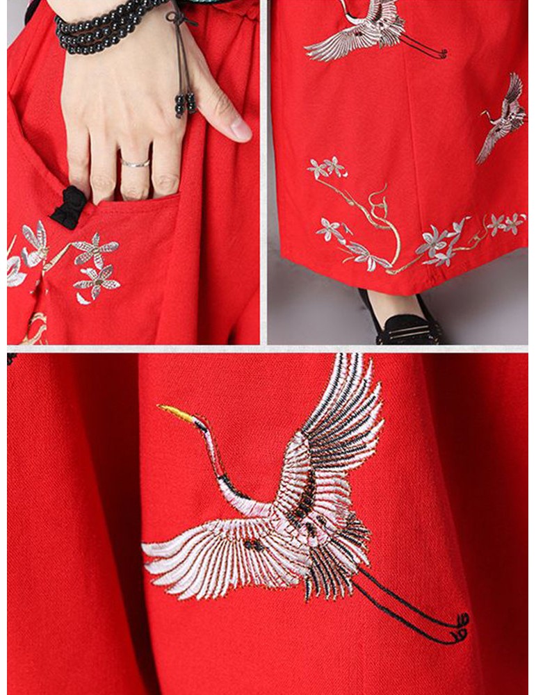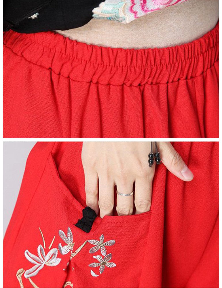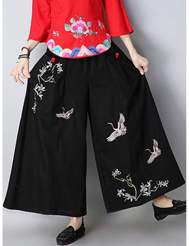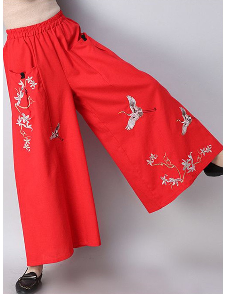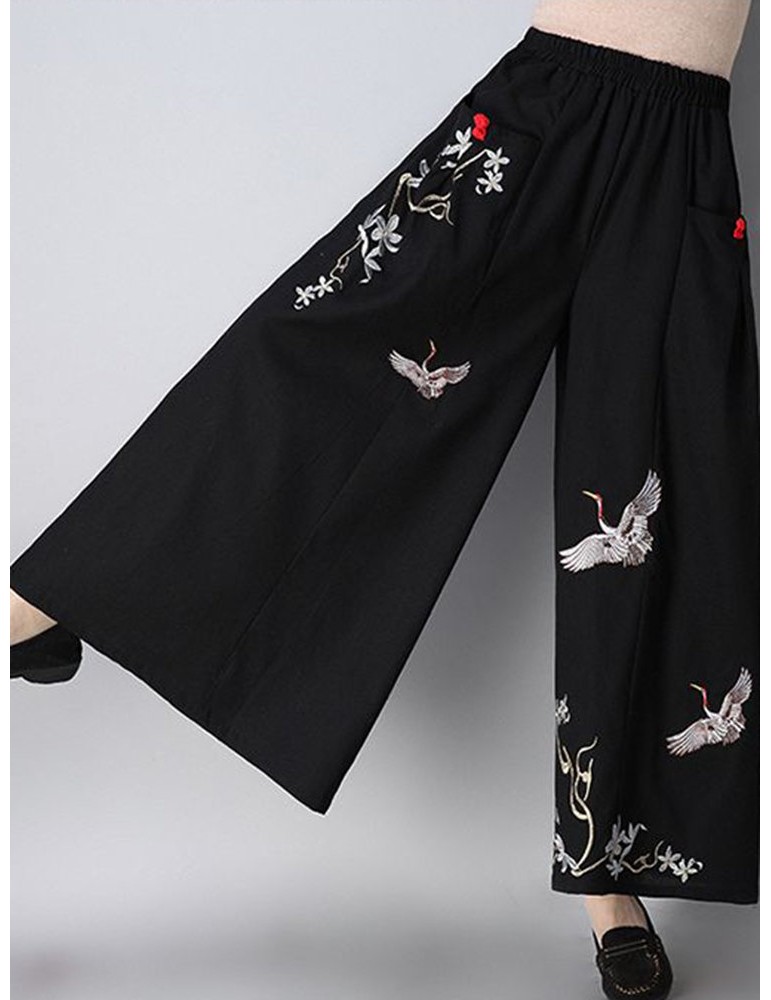 Vintage Embroidery Elastic Waist Wide Leg Pants