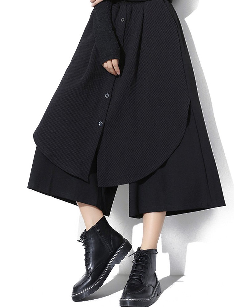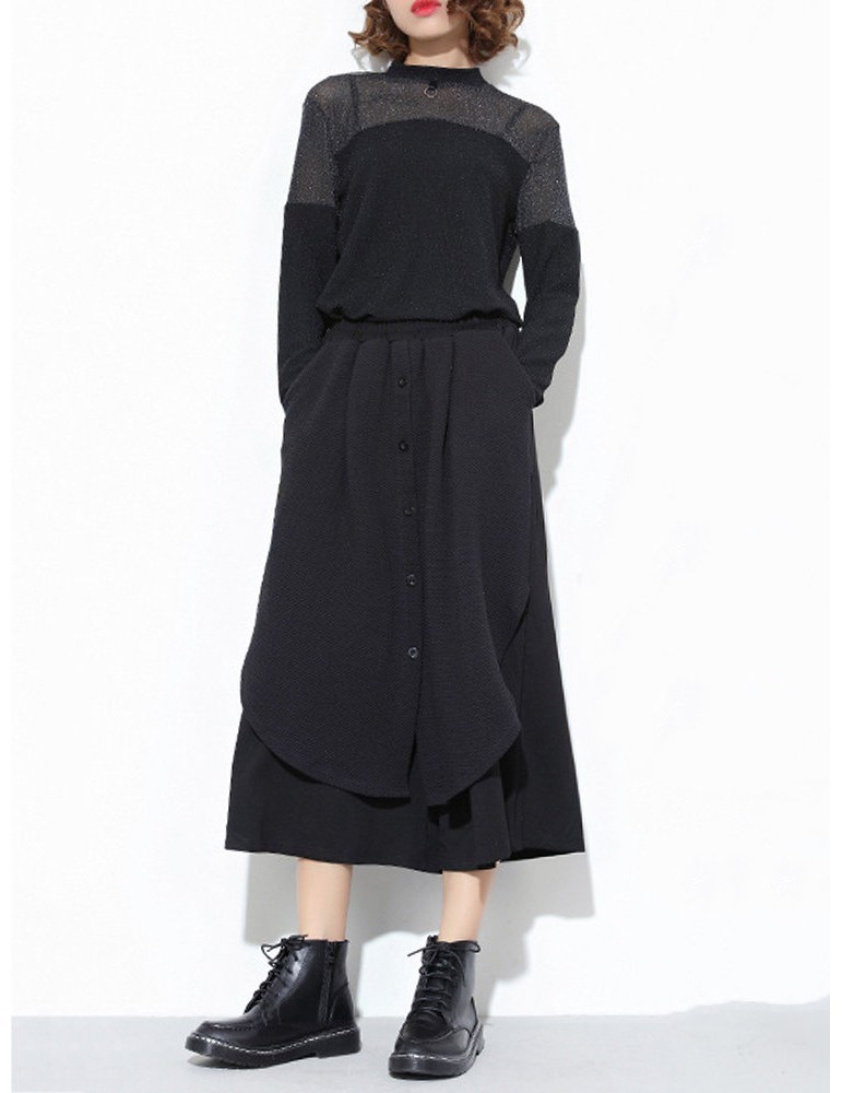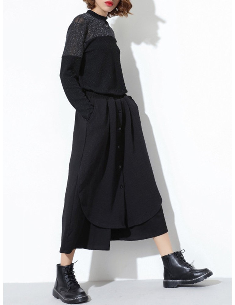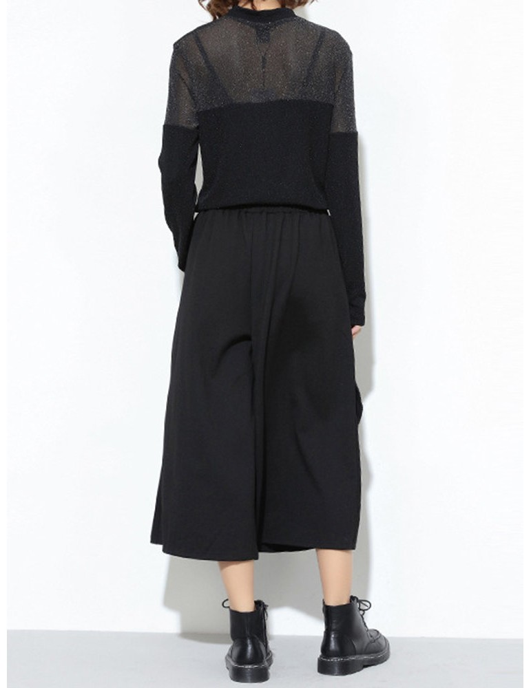 Fashion Black Stitching Elastic Waist Harem Pants For Women