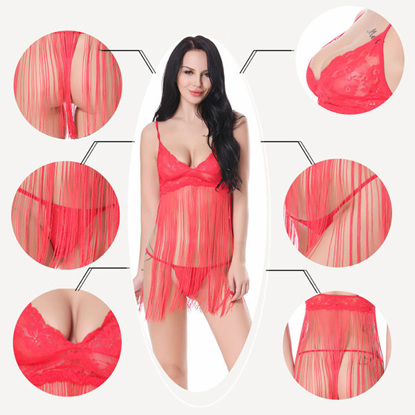 Sexy Lace Tassel Deep Plunge Hollow Out Spaghetti Strap Babydolls For Women