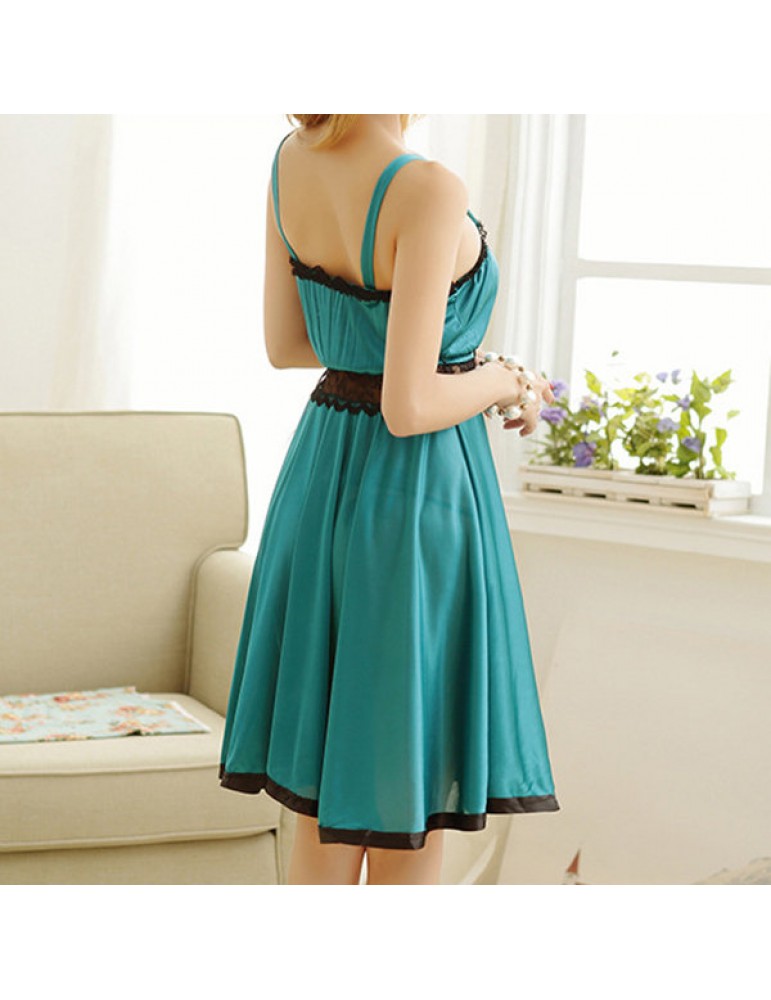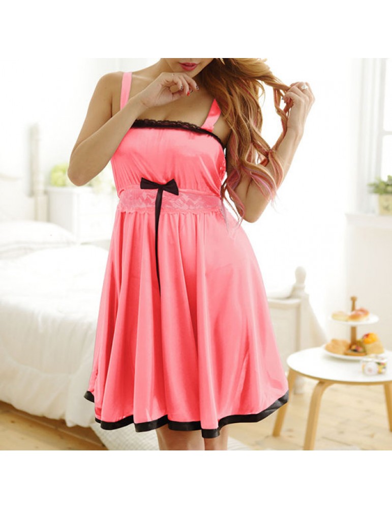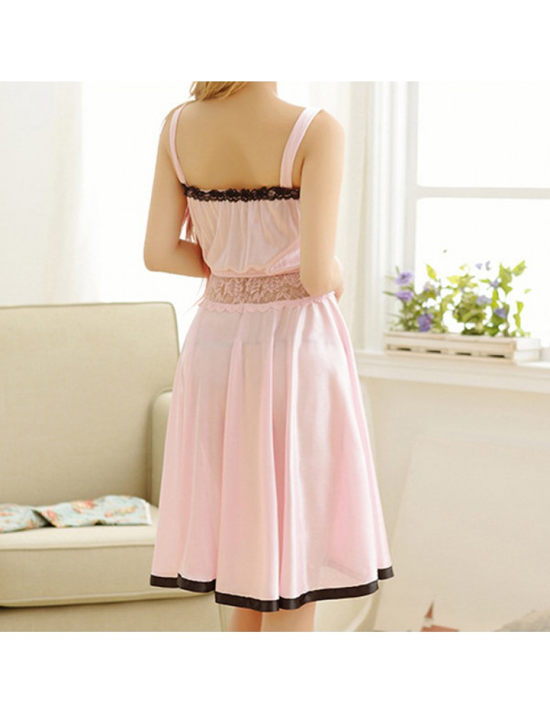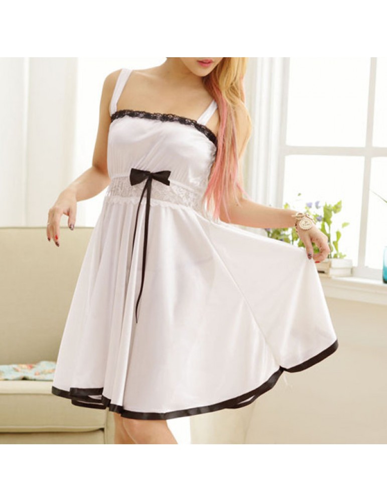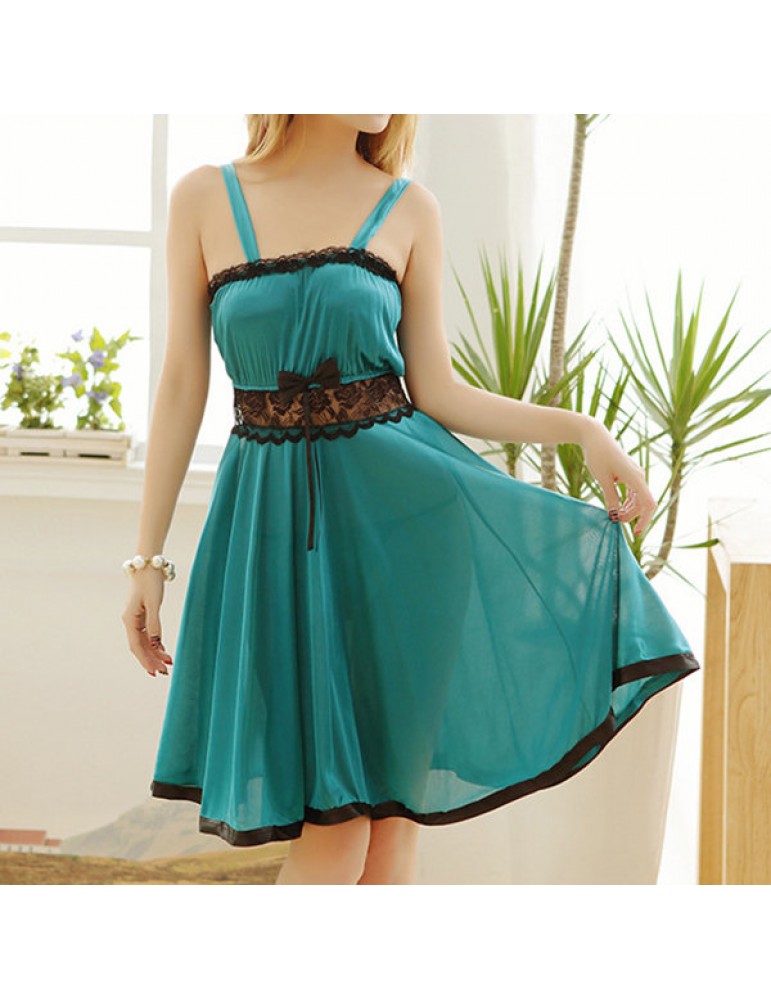 Sexy Lace Lingerie See Through Ruffle Bowknot Expansion Nightdress
