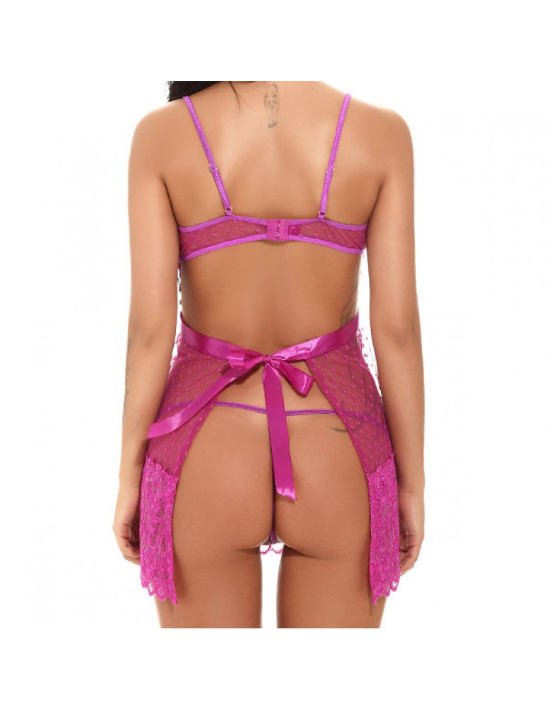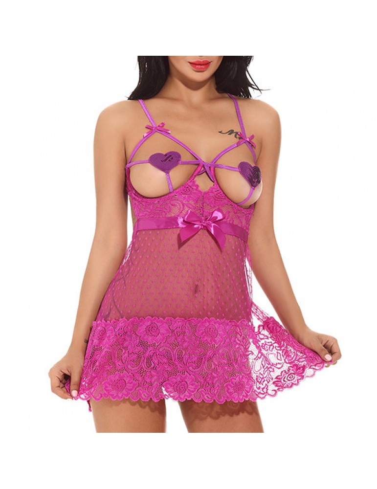 Sexy Lace Up Bowknot Open Cup T-back Nightwear