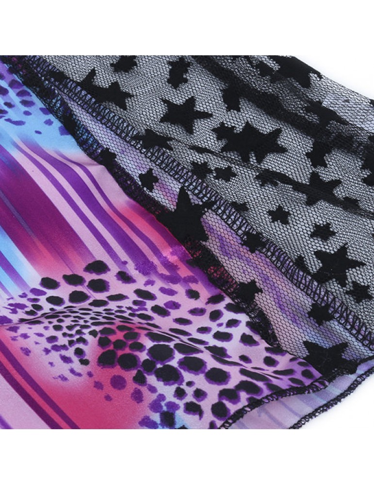 Women Sexy V Neck Transparent Babydoll Star Printing Hollow Temptation Nightdress