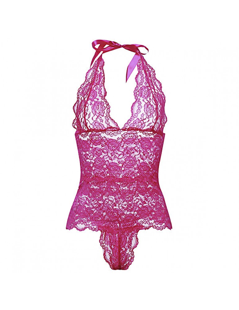 Sexy See Through Lace Halter Teddies Low Cut Babydoll For Women