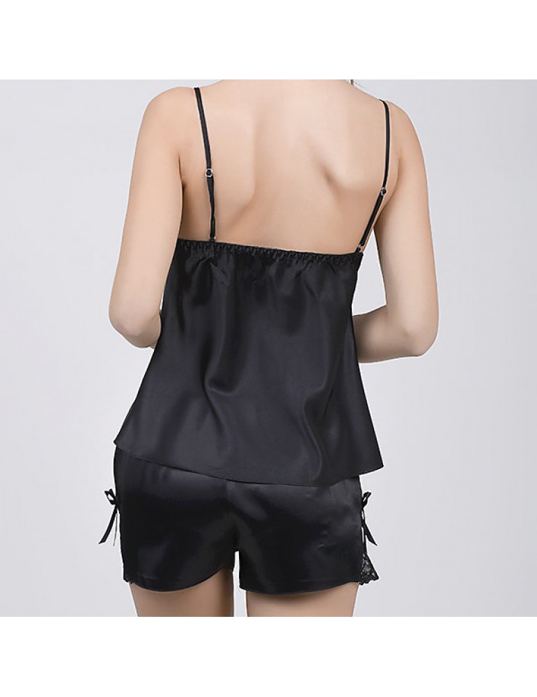 Embroidery Bowknot Silk Backless Sexy Lingerie Sets