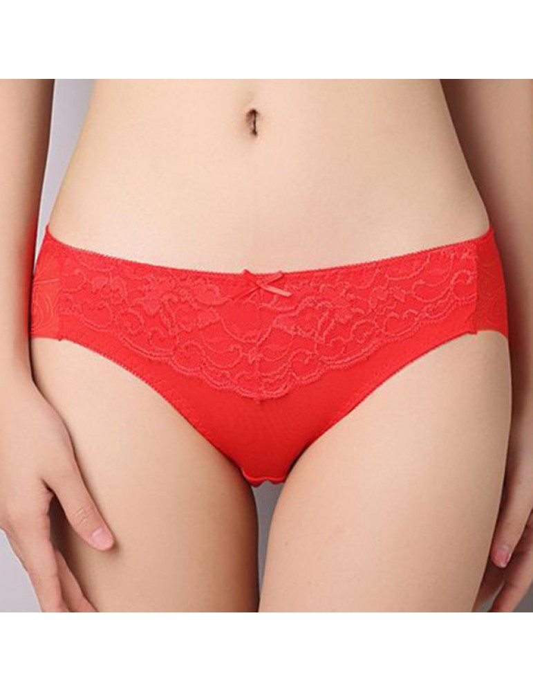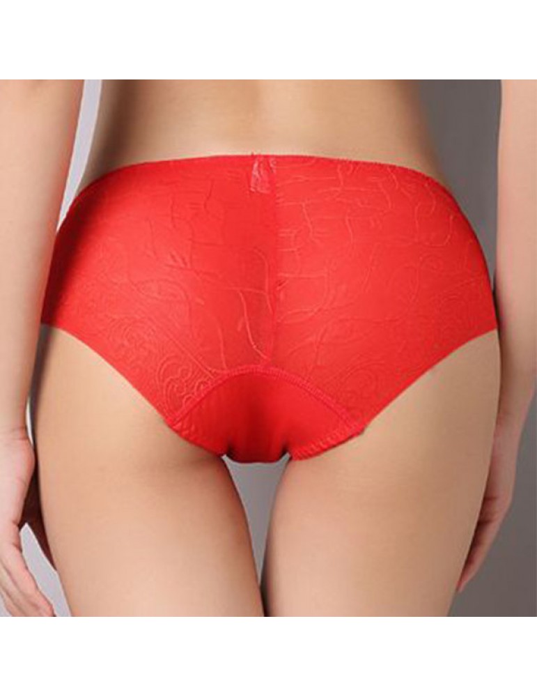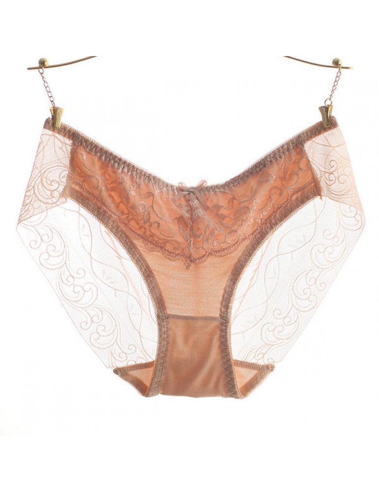 Embroidered Lace Seamless Breathable Mid Waist Panties For Women