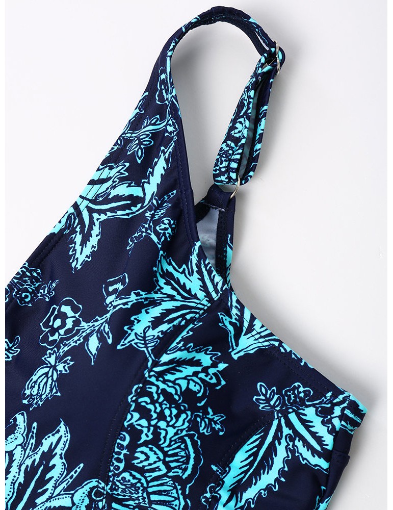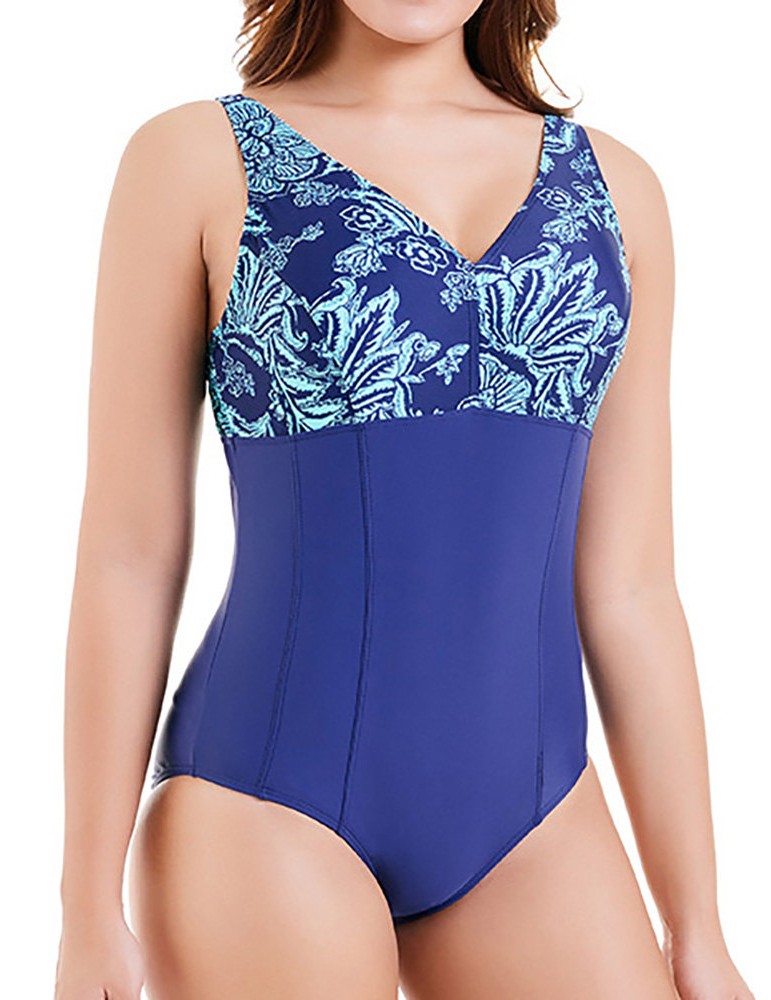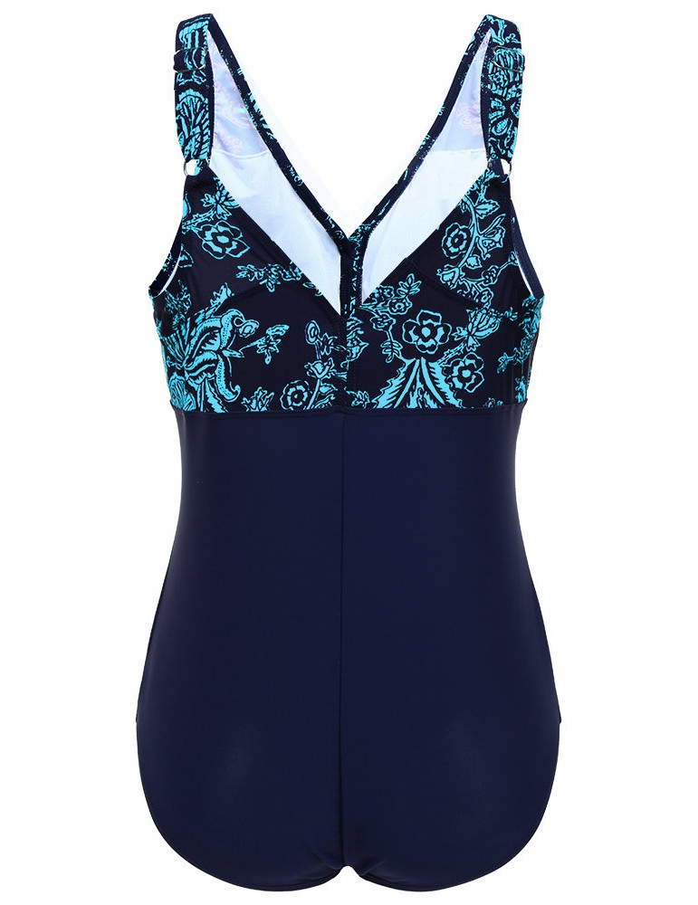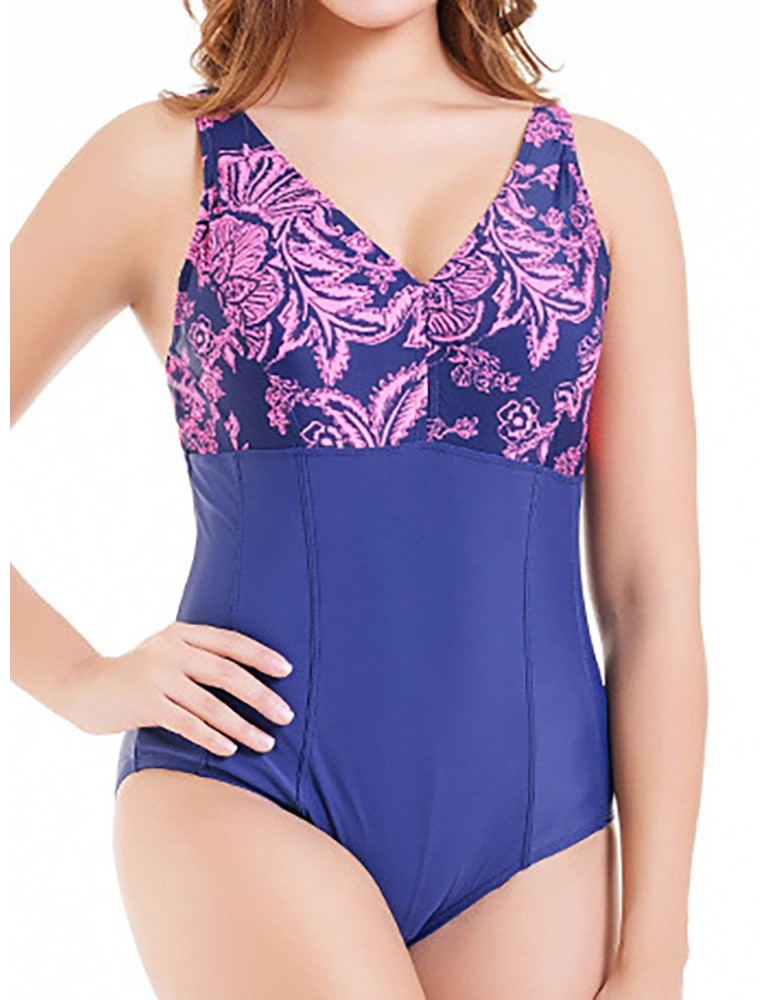 Patchwork Printed Conservative Fast Drying Elastic One Piece Swimwear