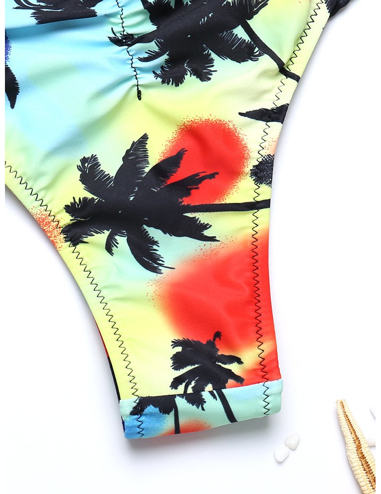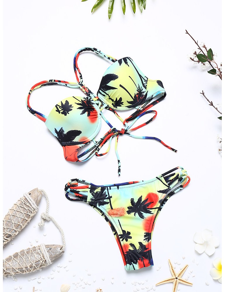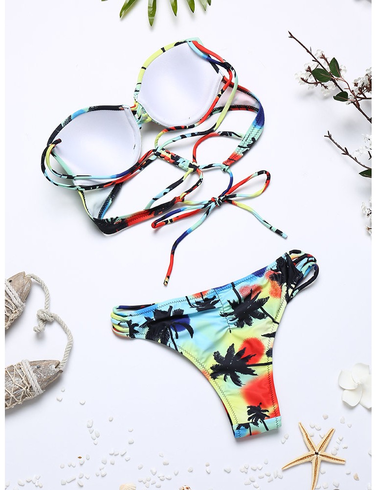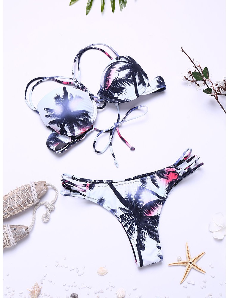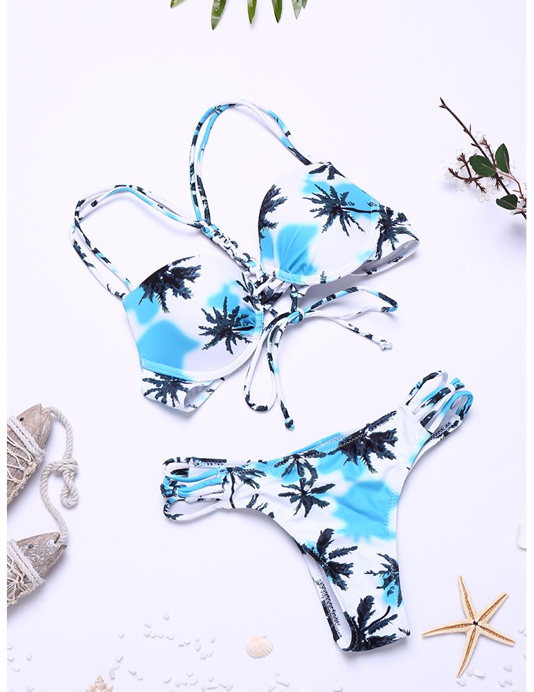 String Coco Tree Printed Lace Up Bikini Set Sexy Bathing Suit