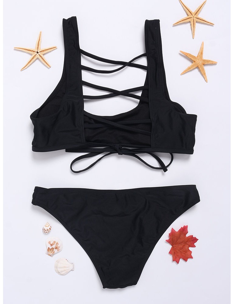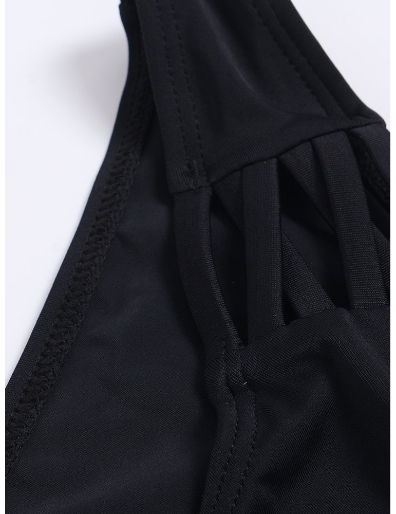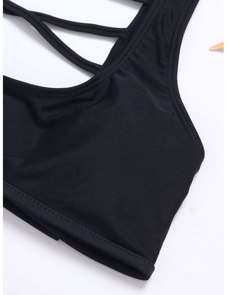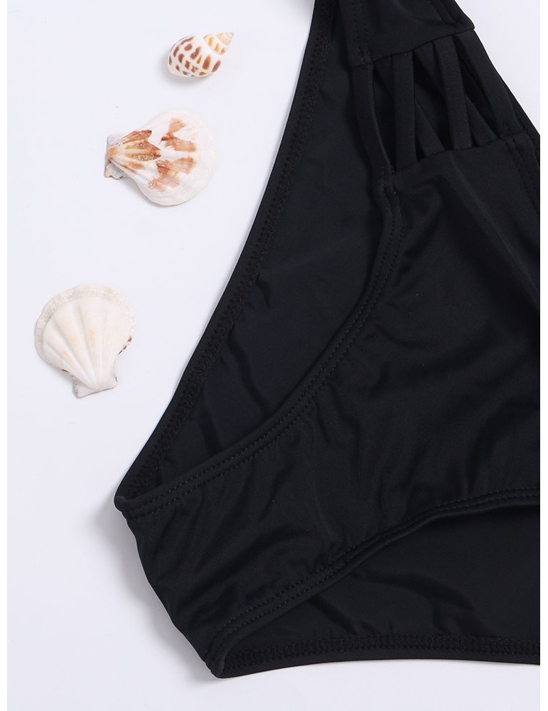 Solid Color Cross Back Hollow Sexy Bikini Swimwear For Women