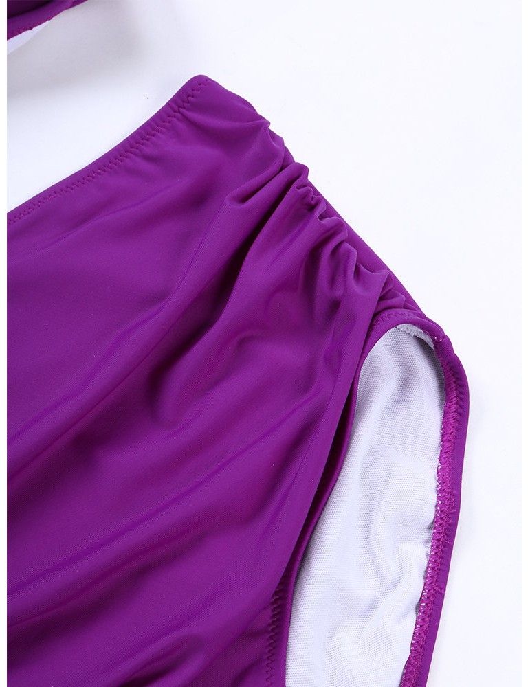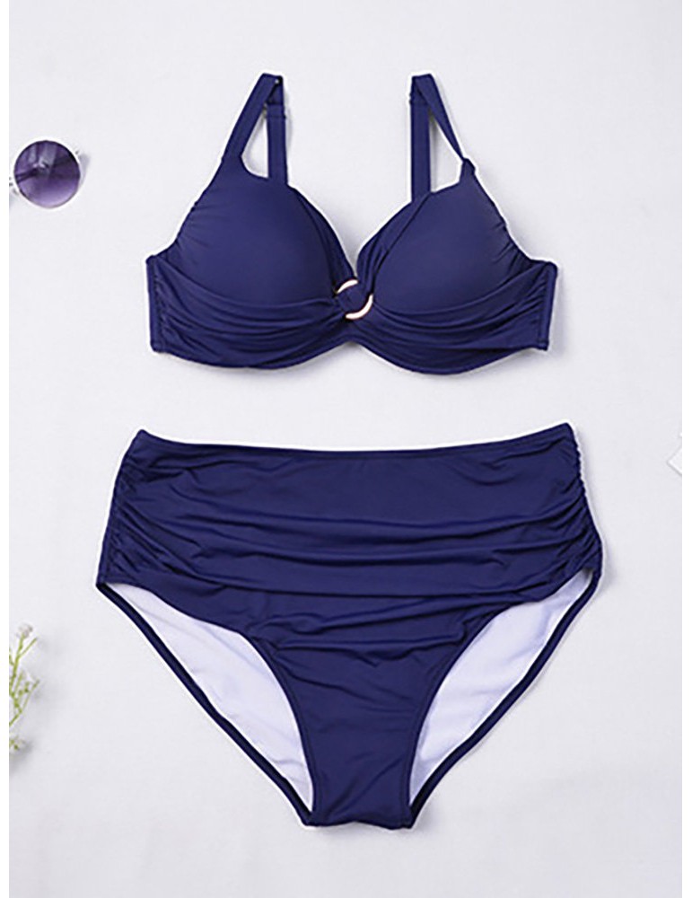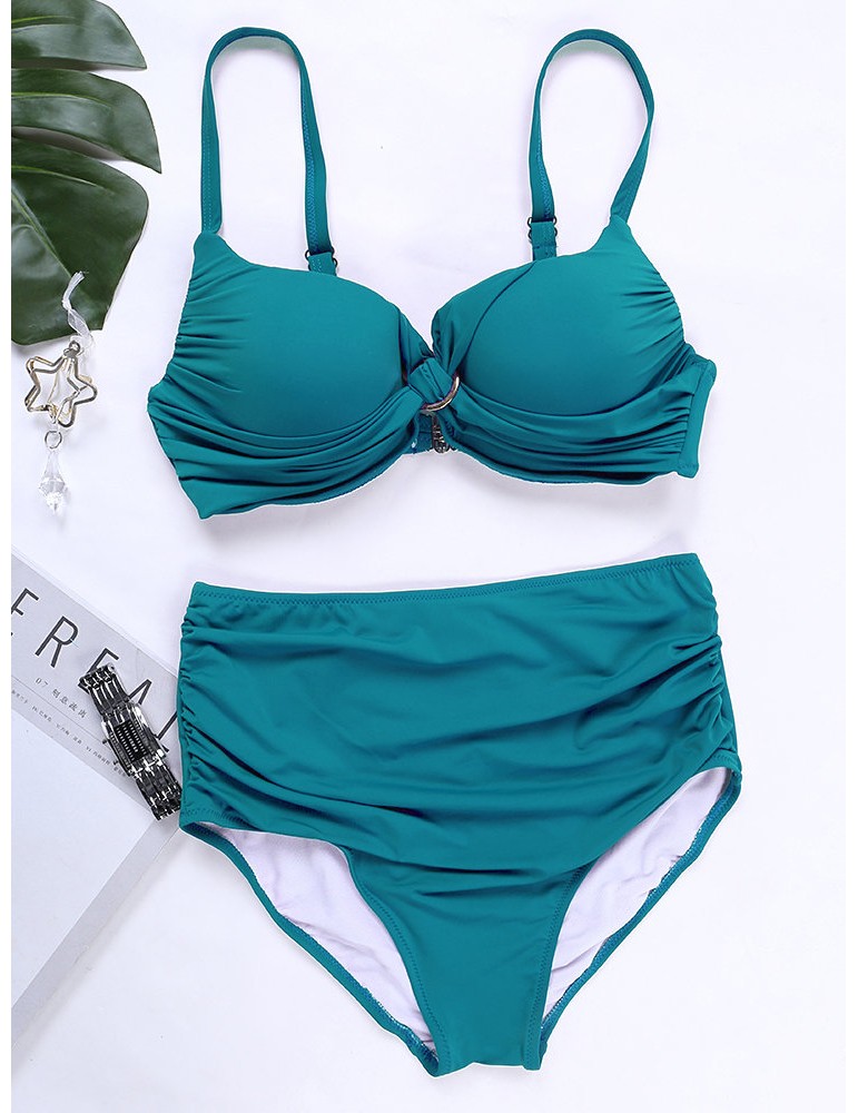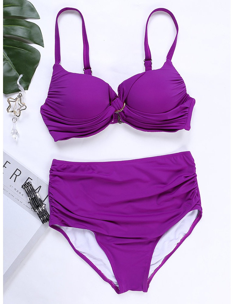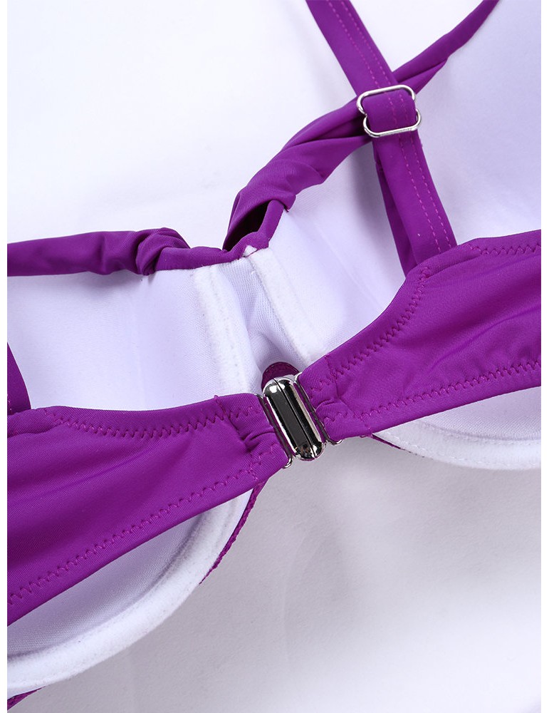 Solid Color Sexy Front Twisted High Waist Elastic Backless Bikinis Swimwear For Women