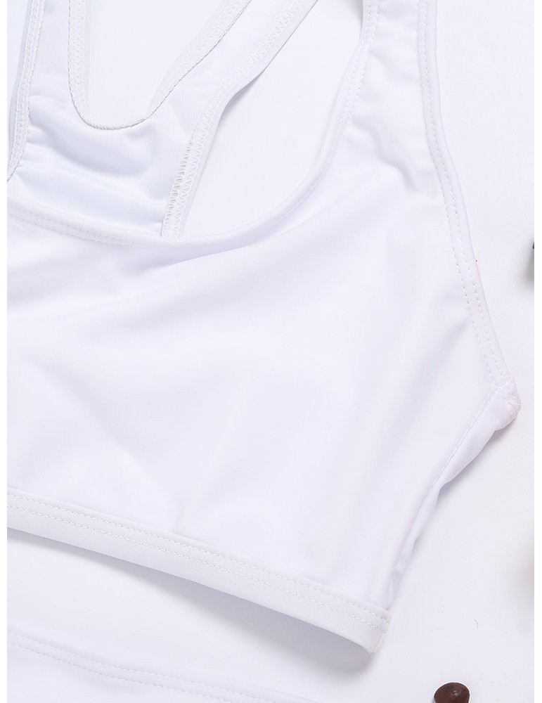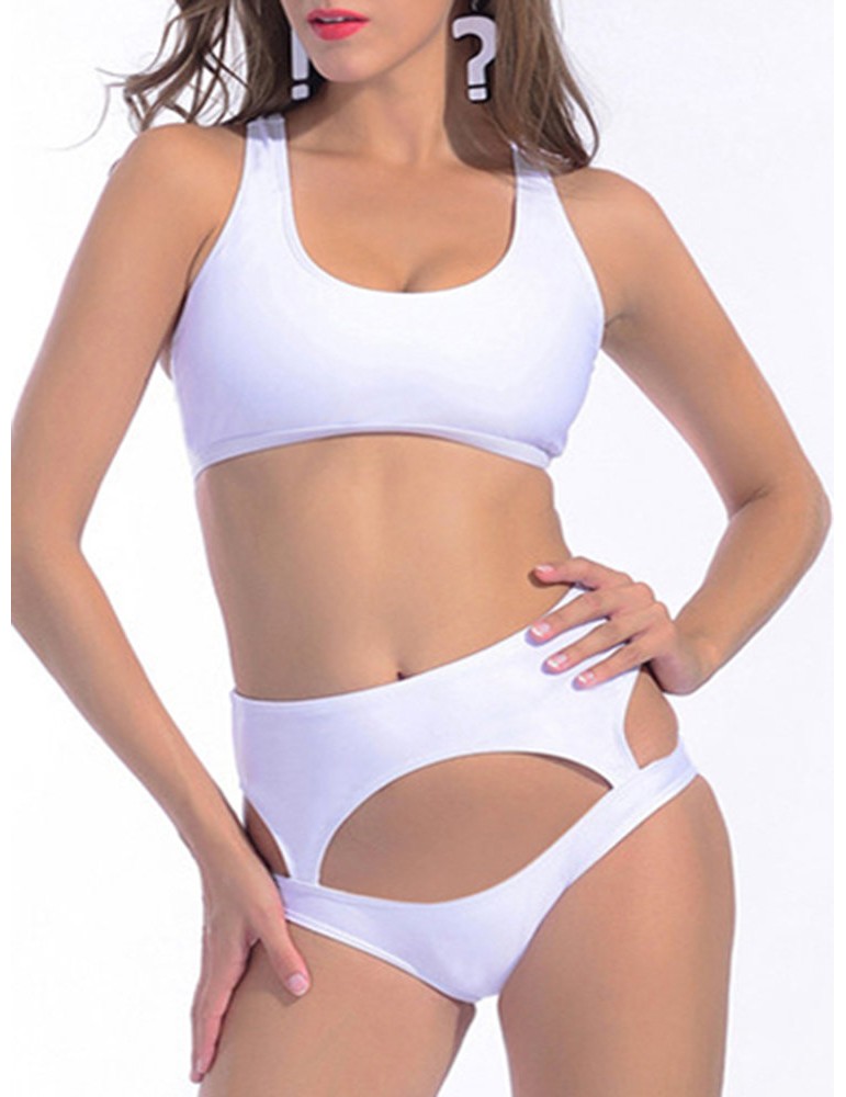 Cut Out High Waist Solid Color Backless Elastic Tankinis Swimwear For Women