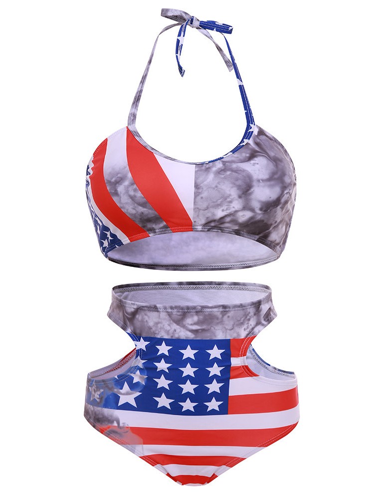 High Waisted Two Piece Wireless American Flag Backless Sexy Swimsuit