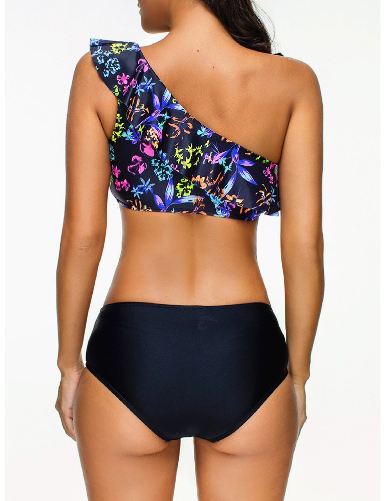 Women Sexy Flounces One Shoulder Printed Bikinis Sets