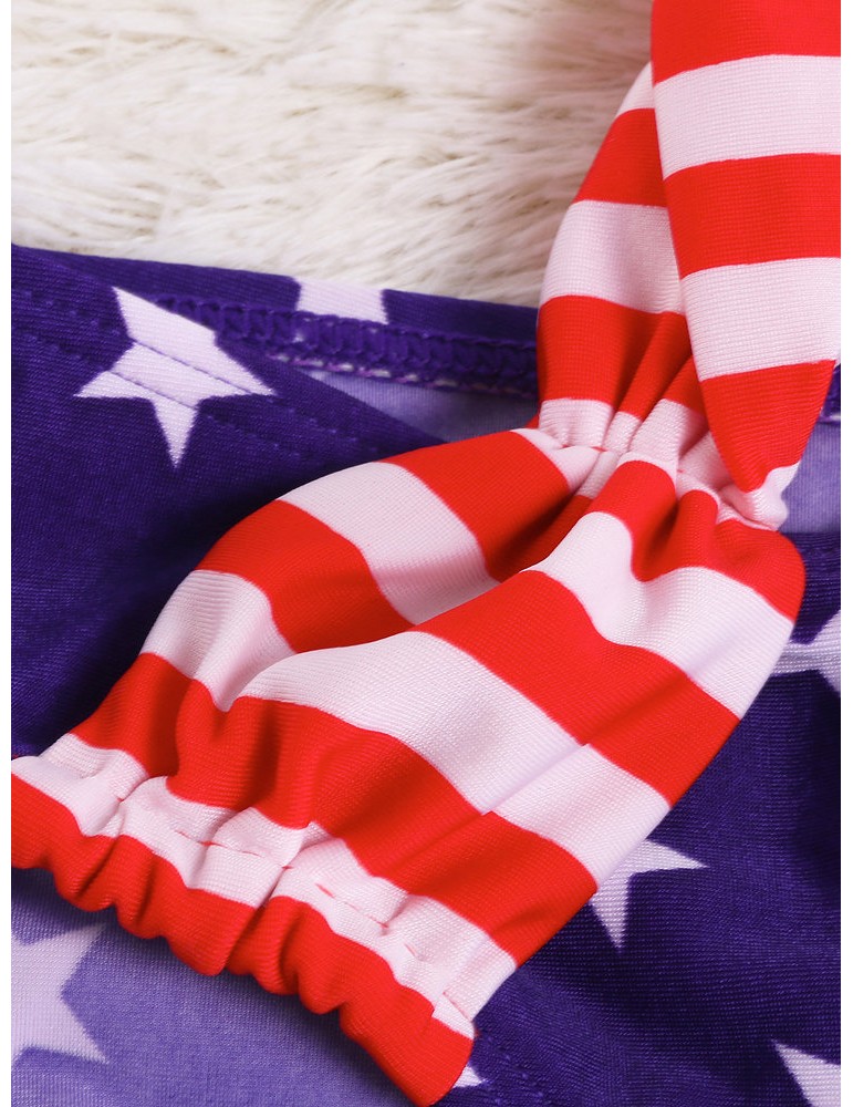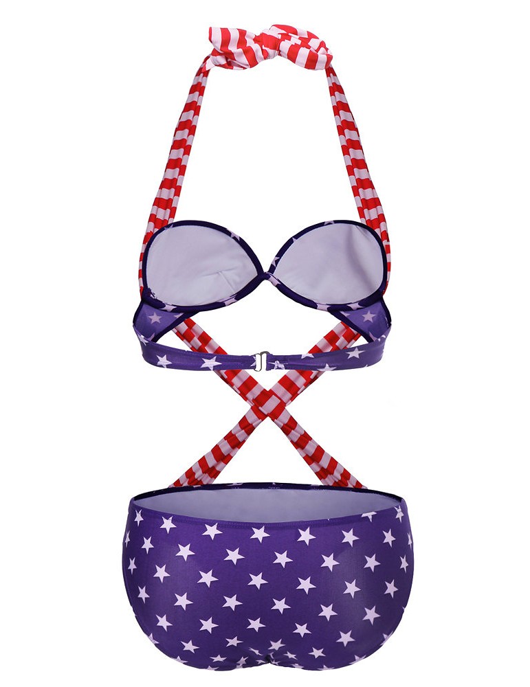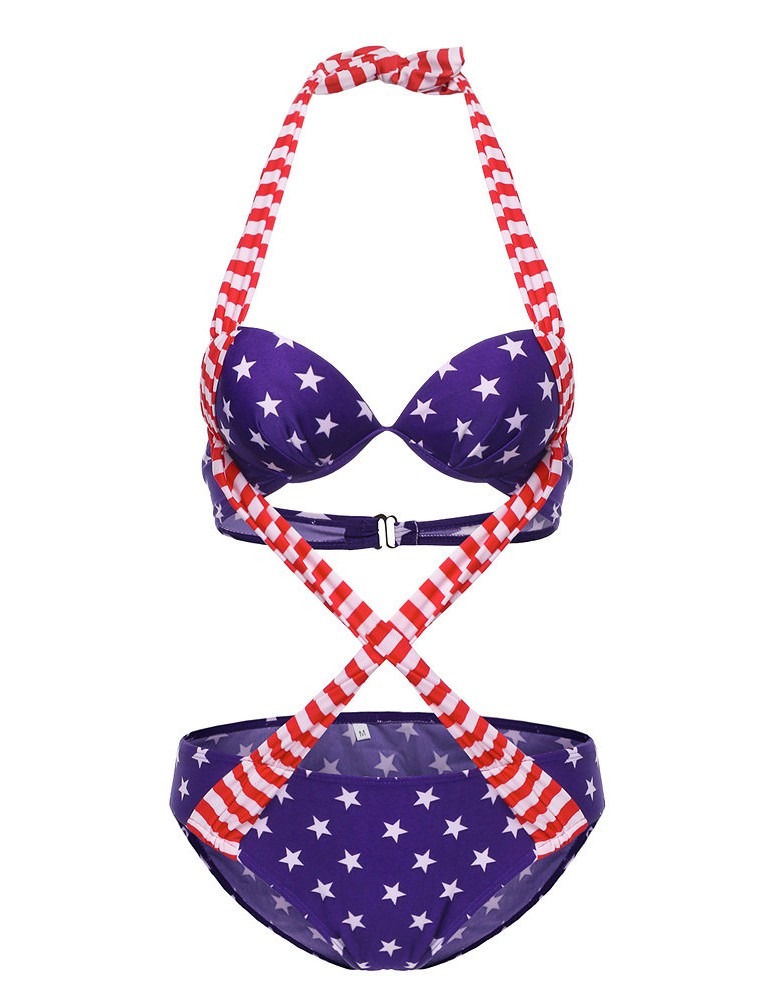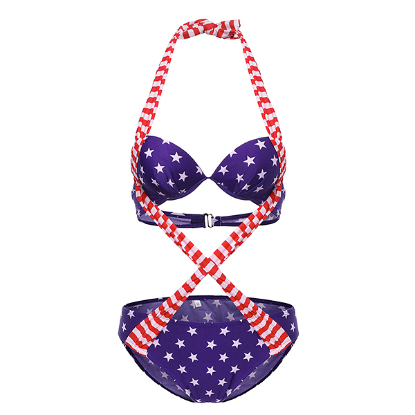 American Flag Criss-cross Backless Lace Up Padding One-pieces Sexy Bikinis
