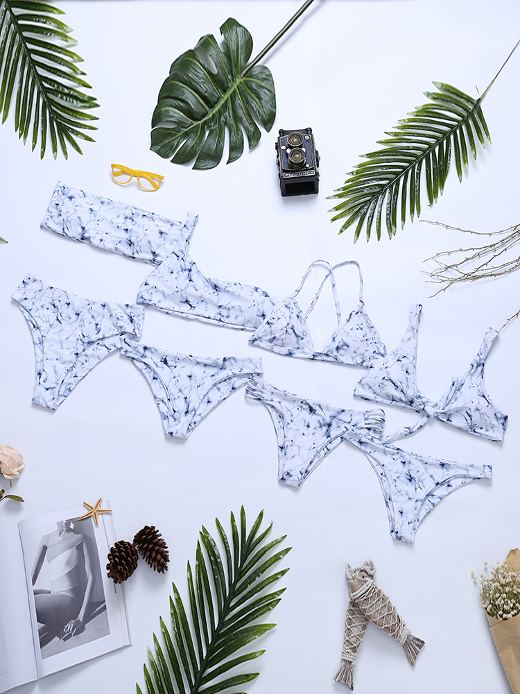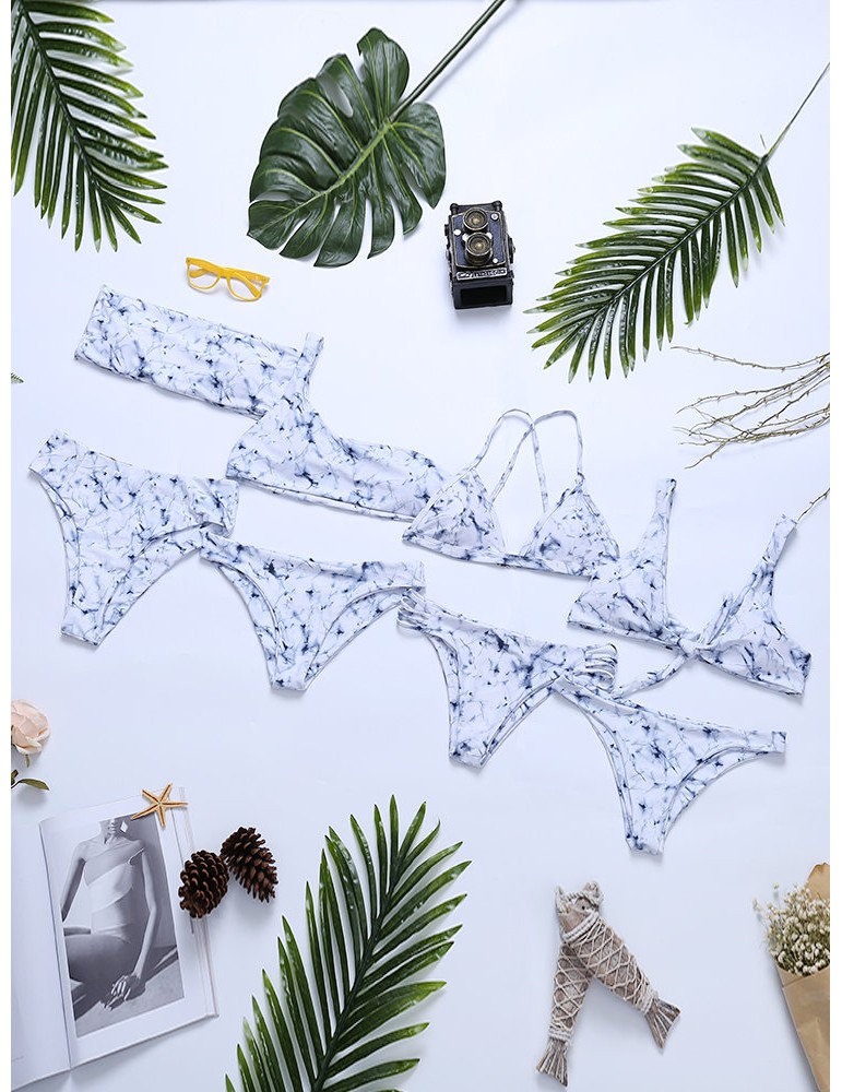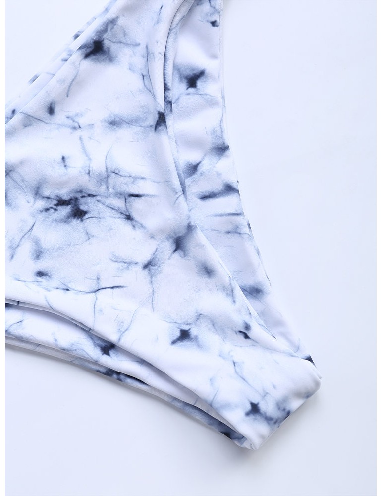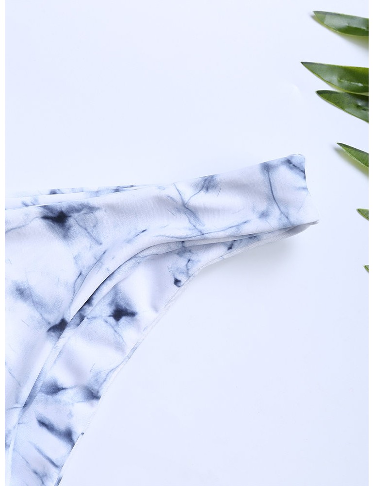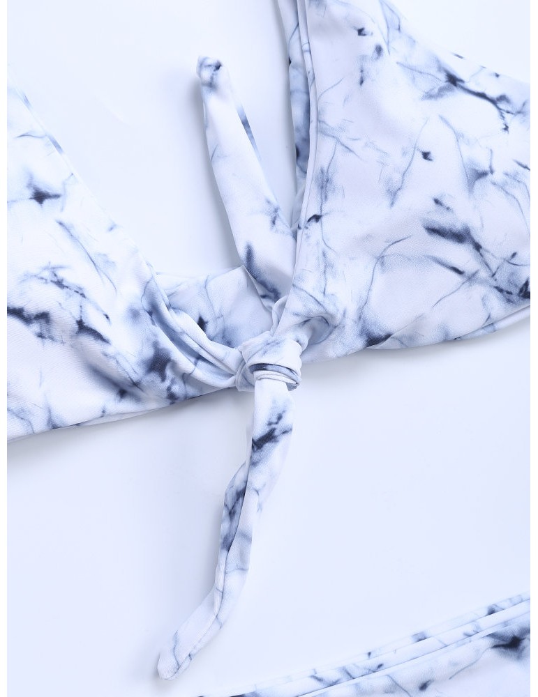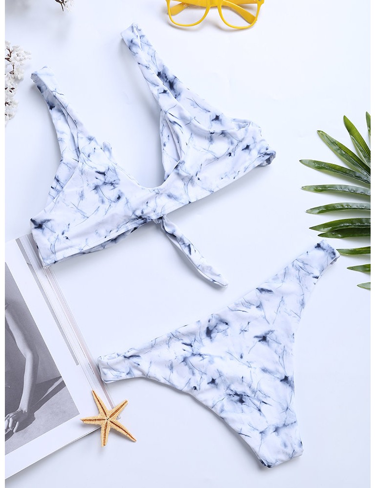 Women Sexy Tie Front Bowknot Marble Printing Backless Soft Bikinis Beach Swimsuits