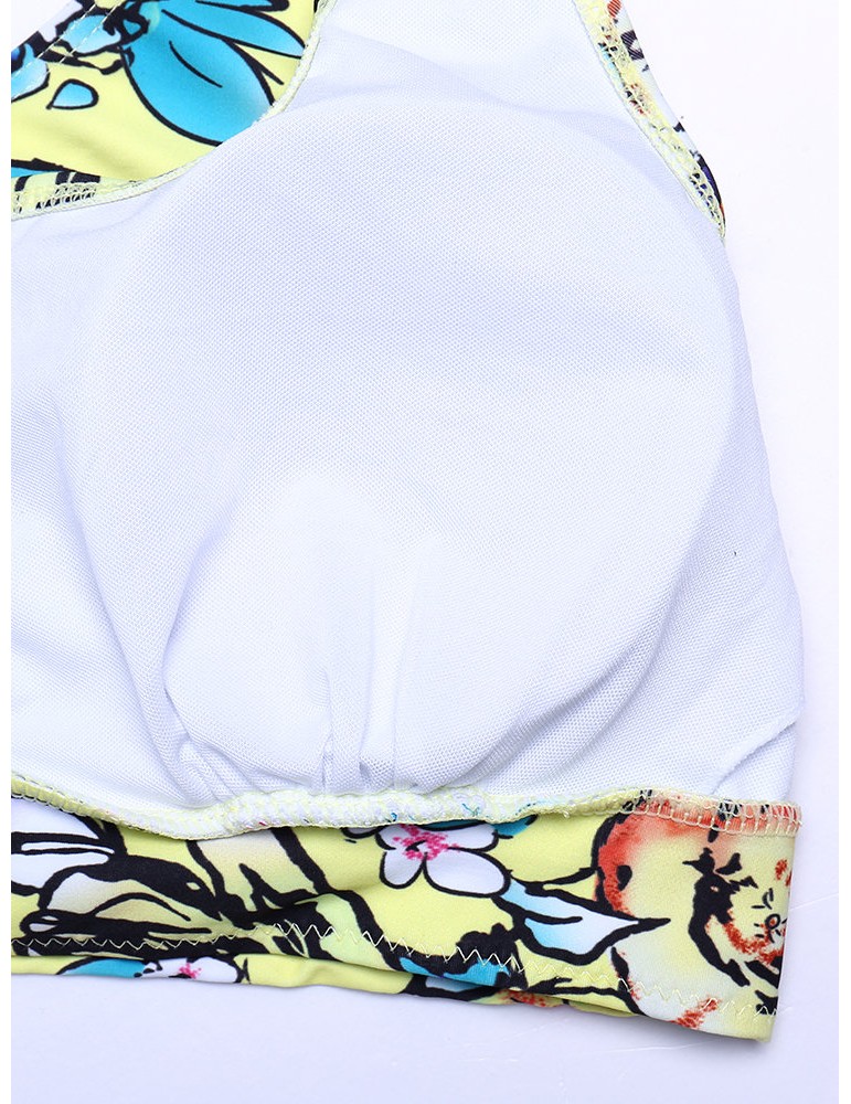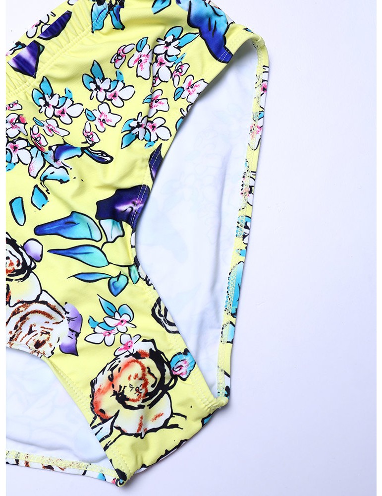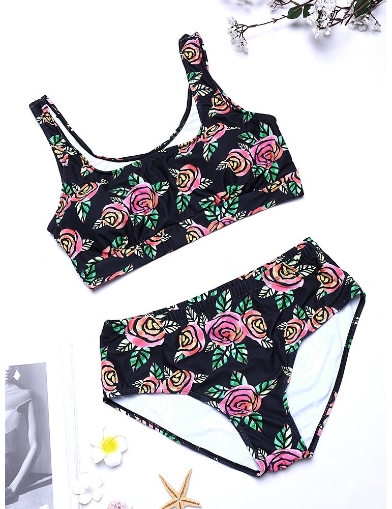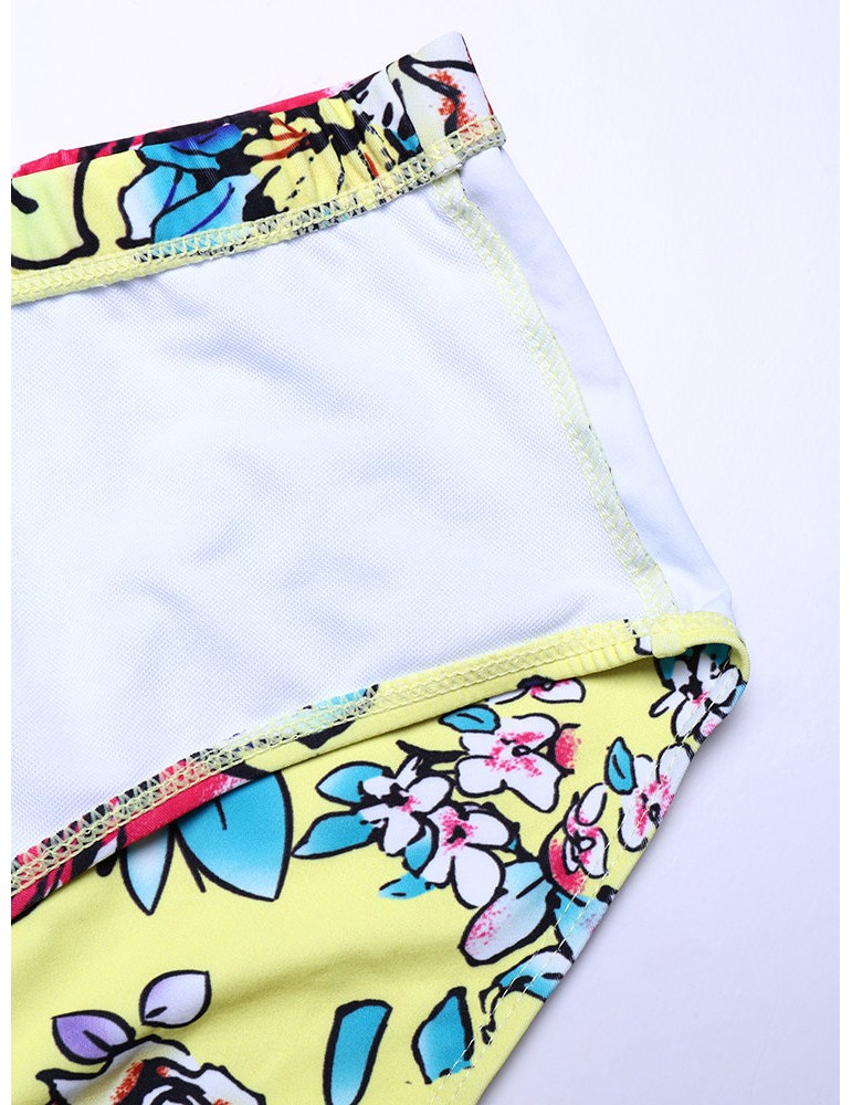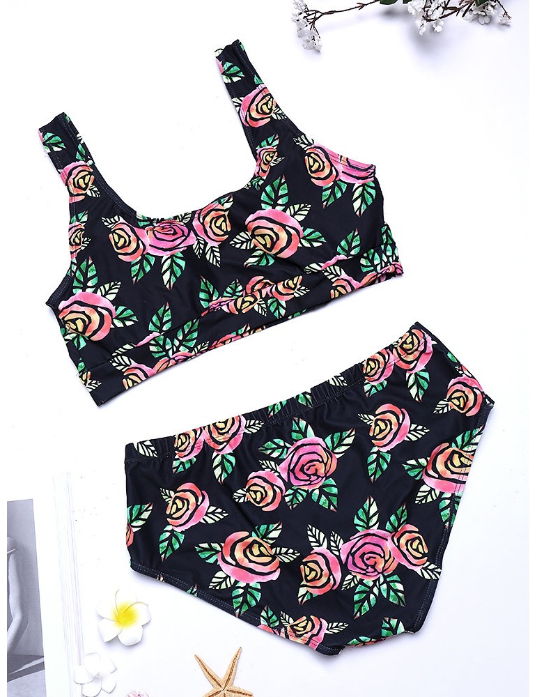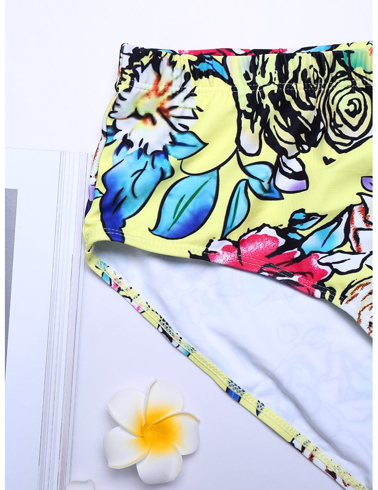 Women Plus Size High Waist U Neck Printed T-shirt Bikini Suit