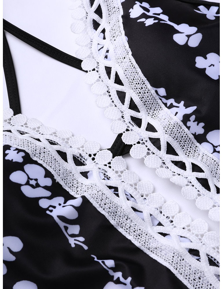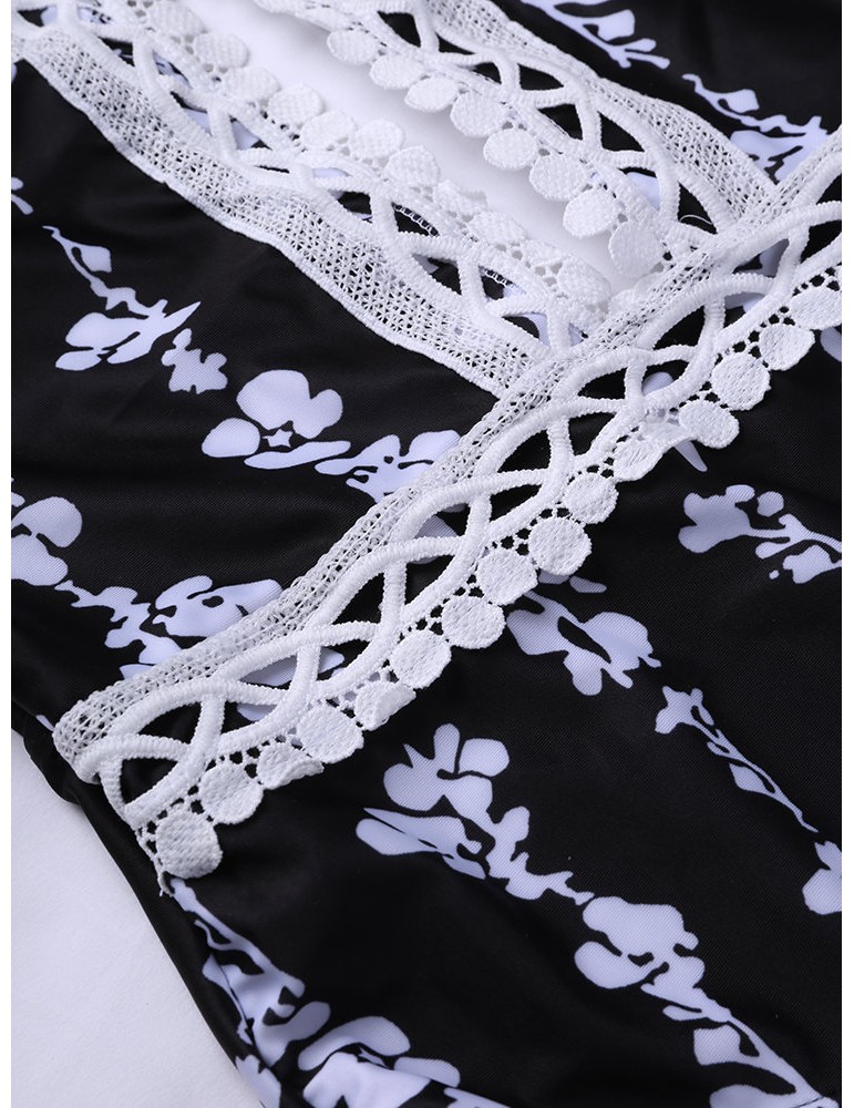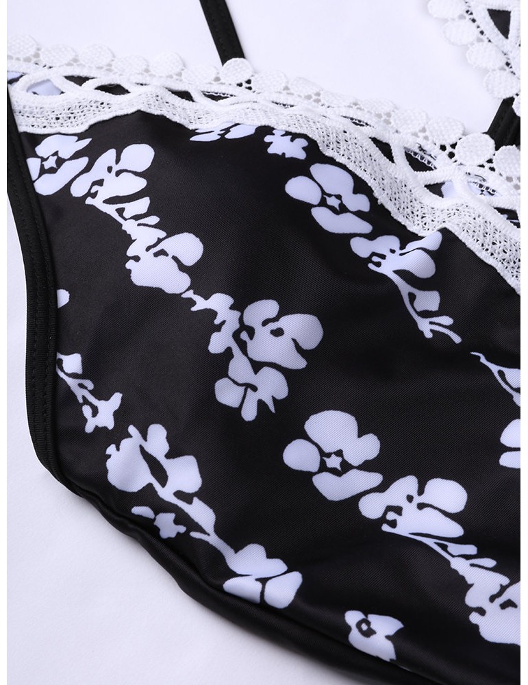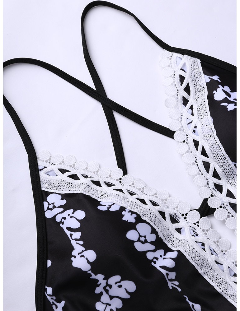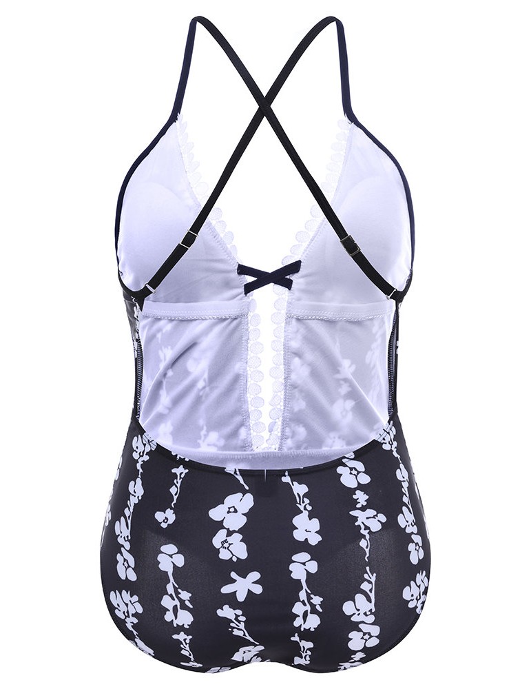 Sexy Backless Lace Printed Striped One Piece Swimsuit For Women