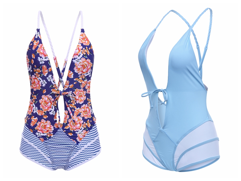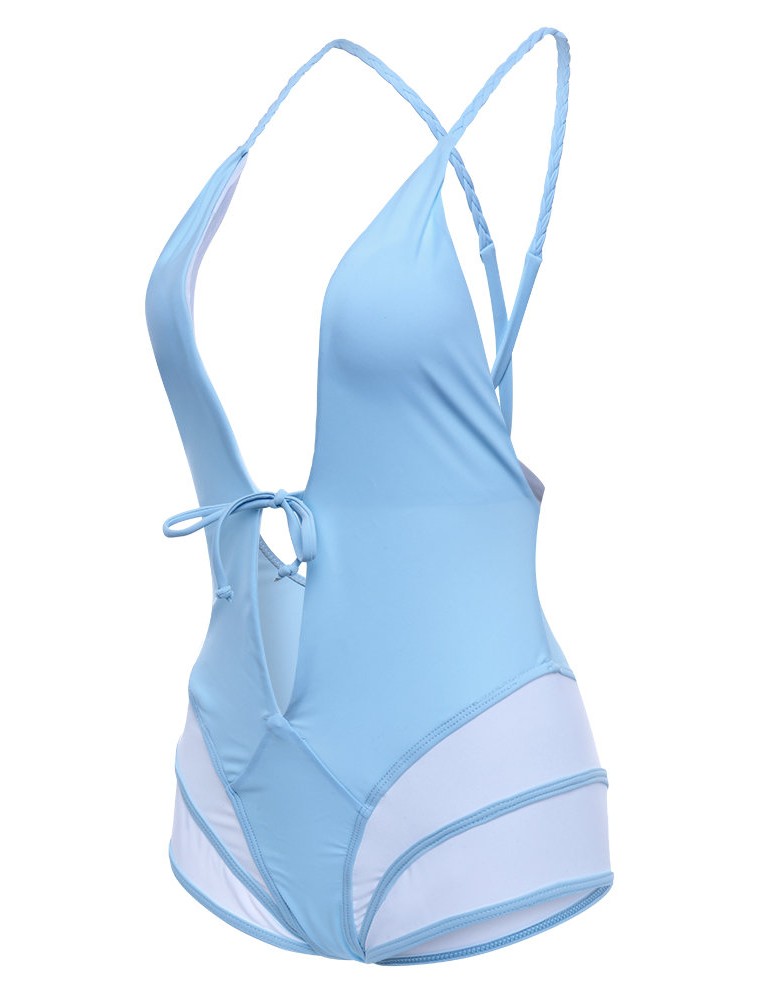 Sexy Printed Stripe Patchwork Tie Front Bowknot Solid Color Monokini Swimsuits For Women