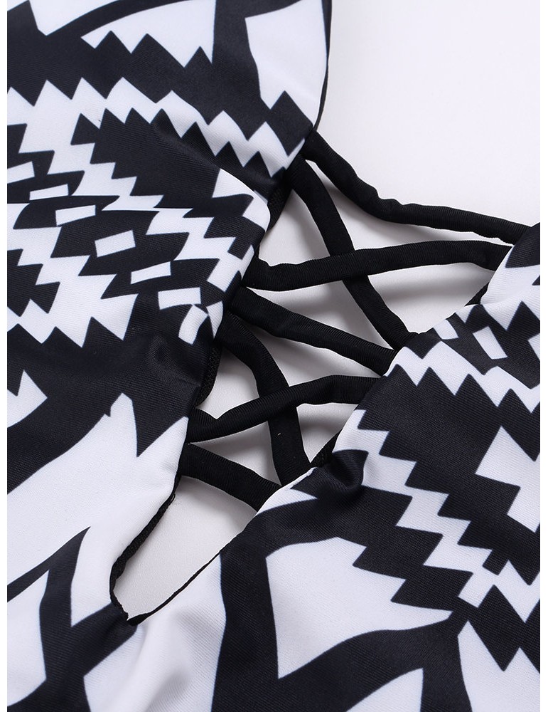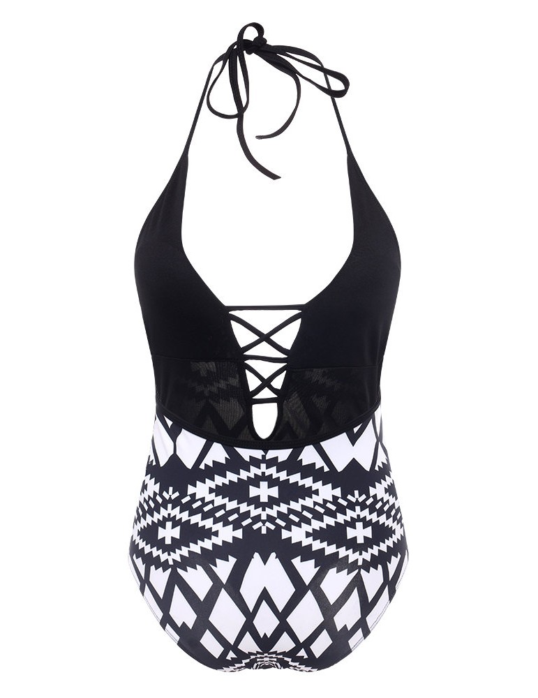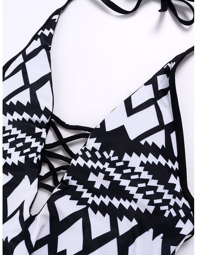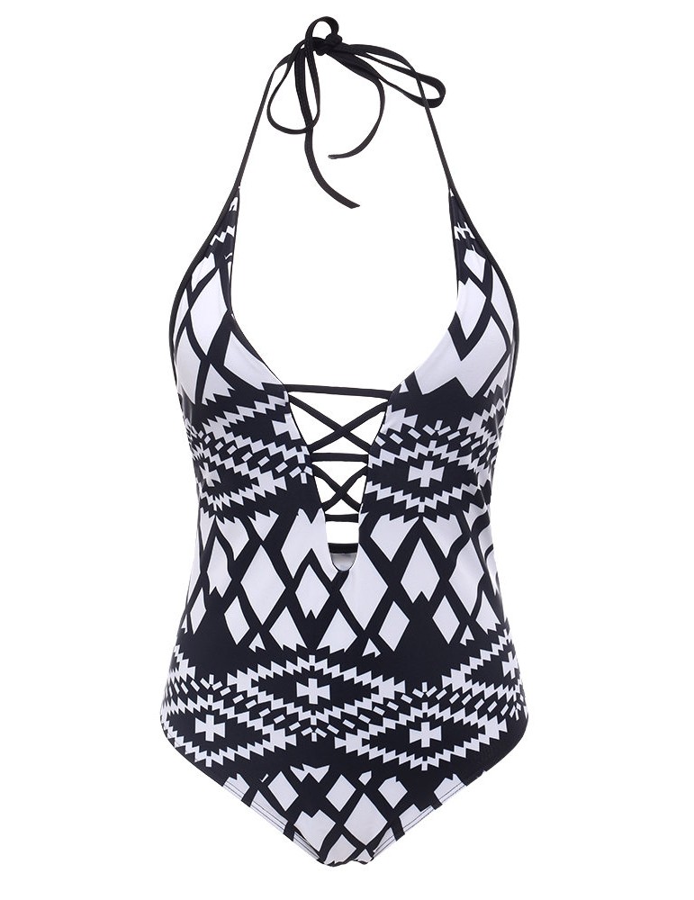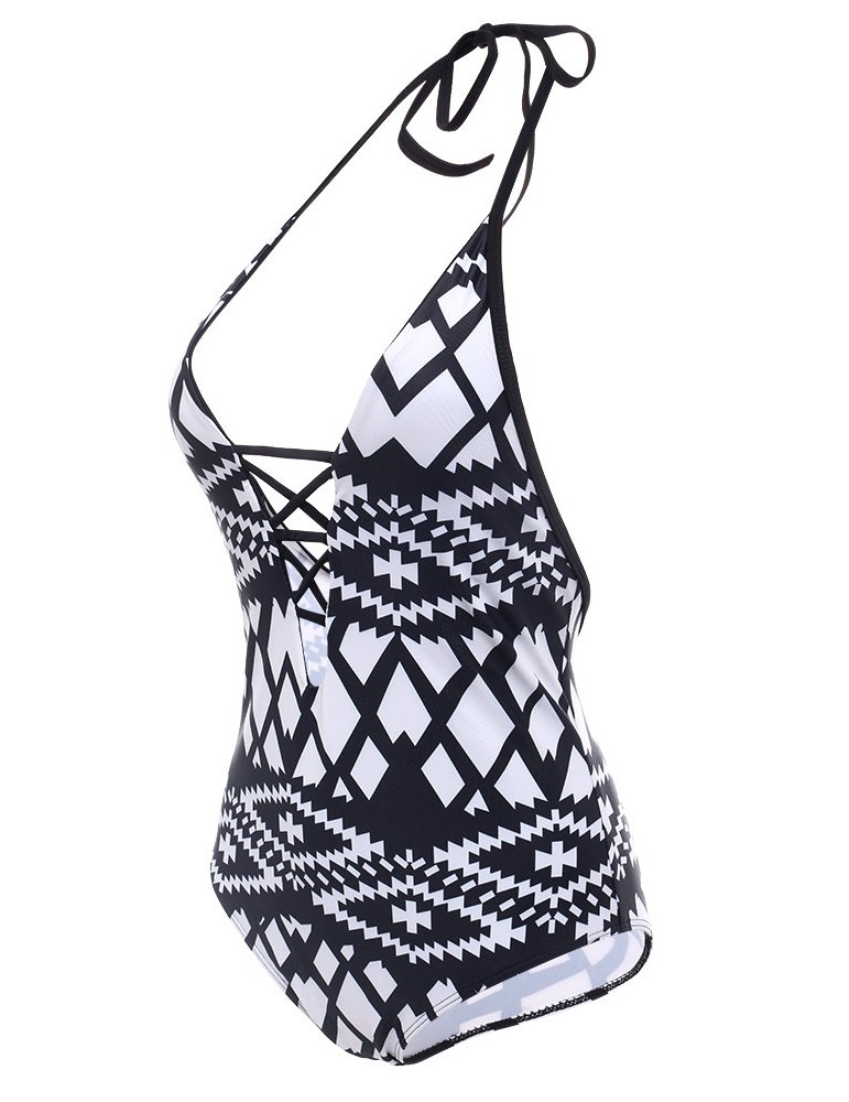 Printed Bandage Halter Scoop Back Sexy Monokinis Swimwear For Women