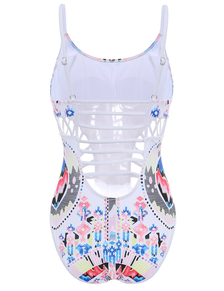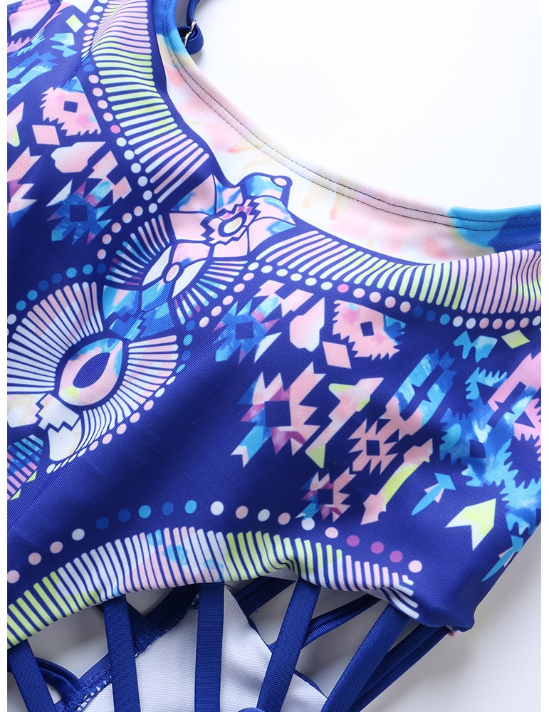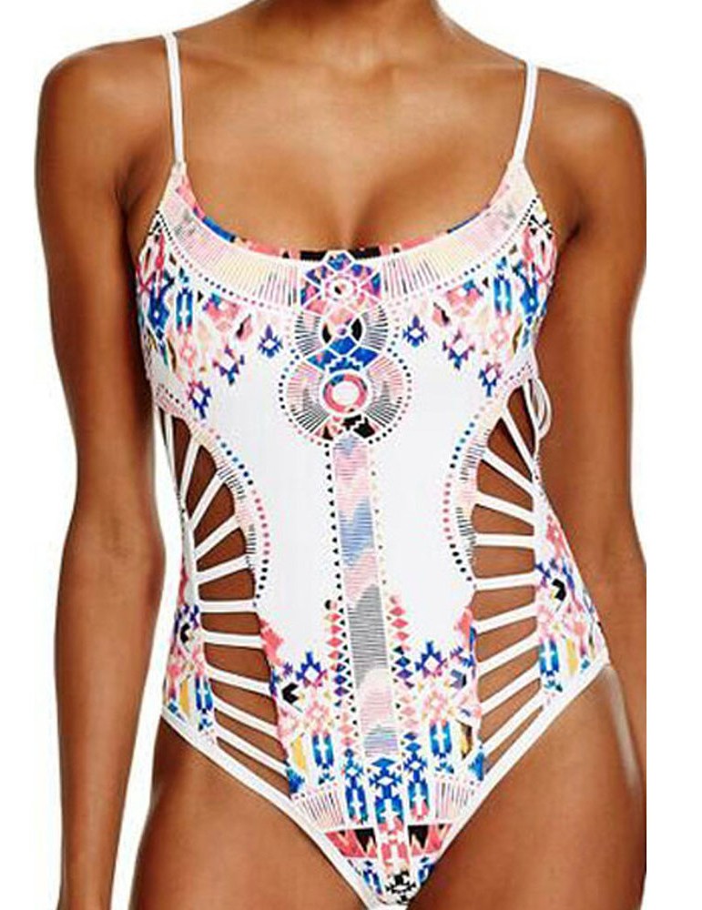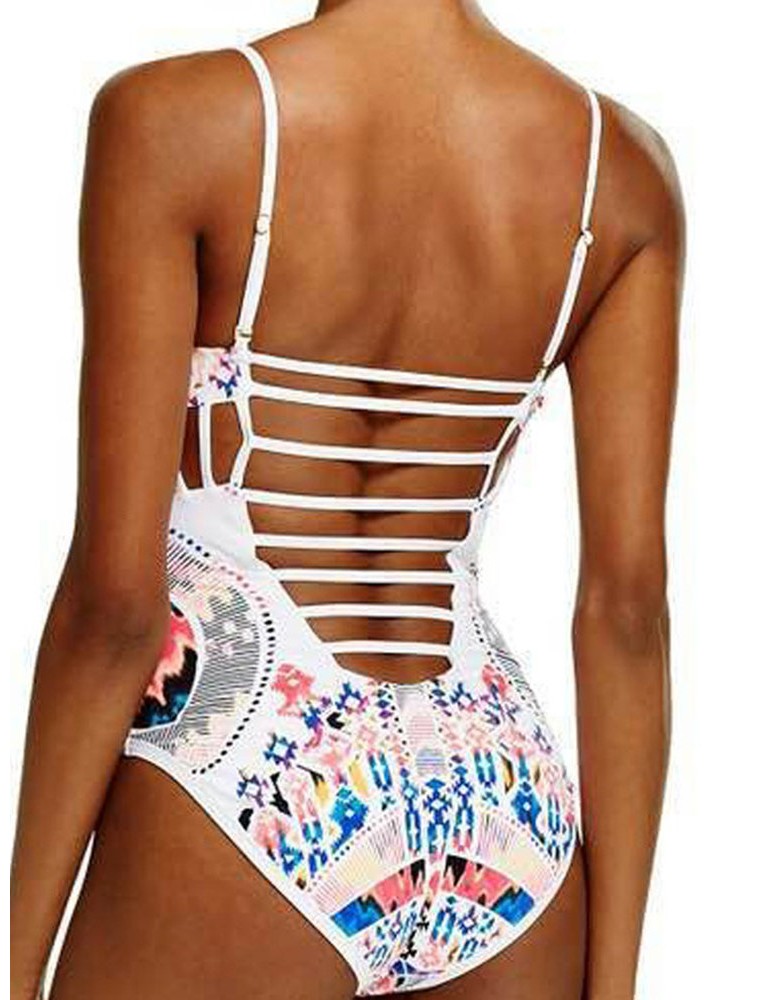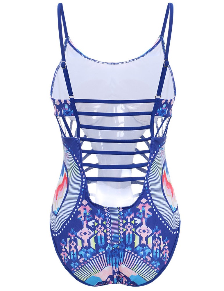 Sexy Indian Style Solid Color Printed Hollow Backless Spaghetti Strap Monokini Swimsuits For Women