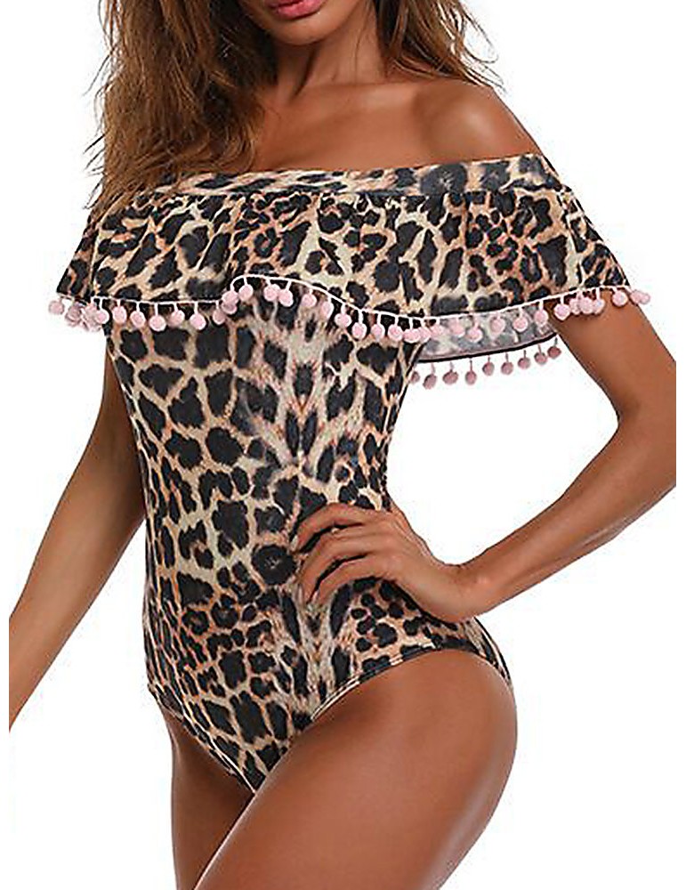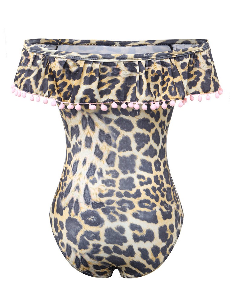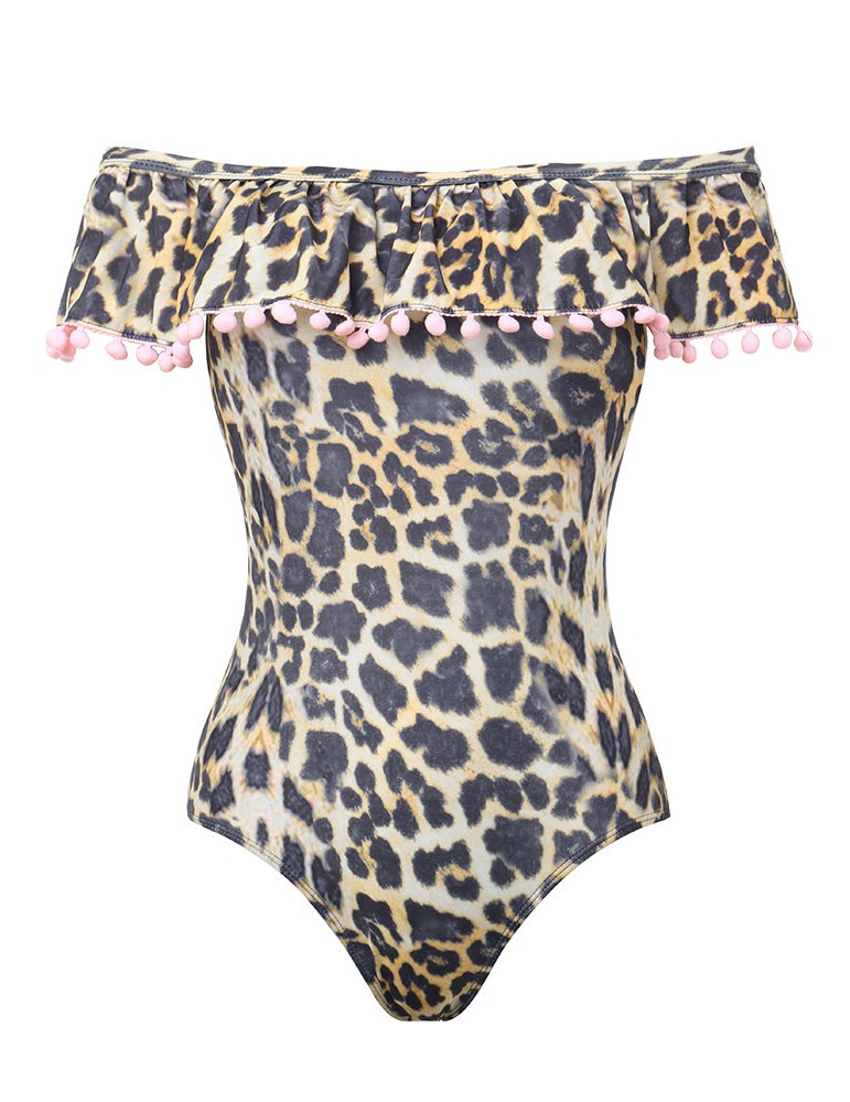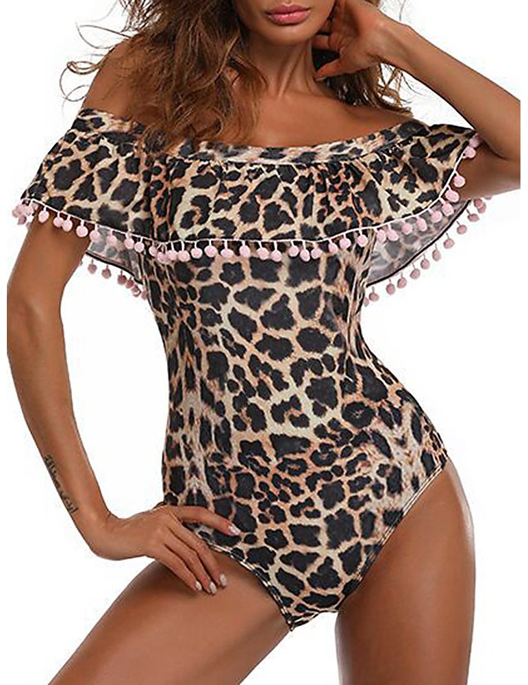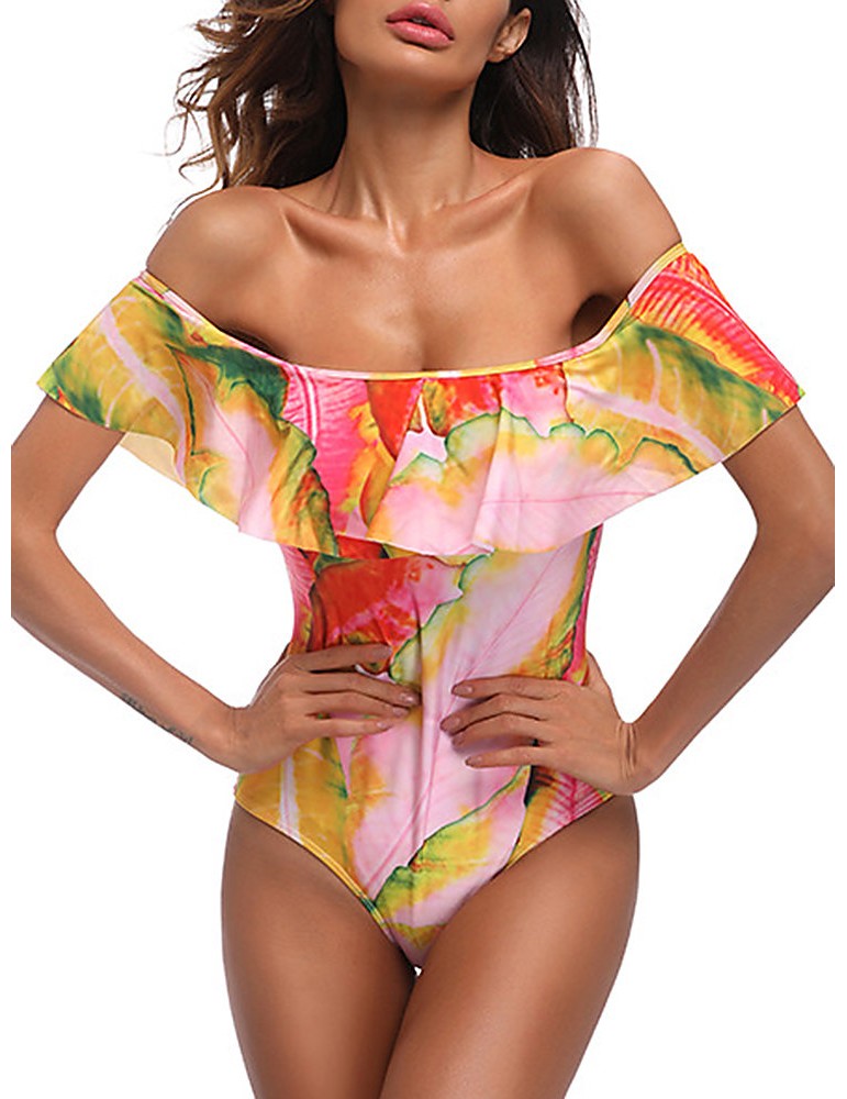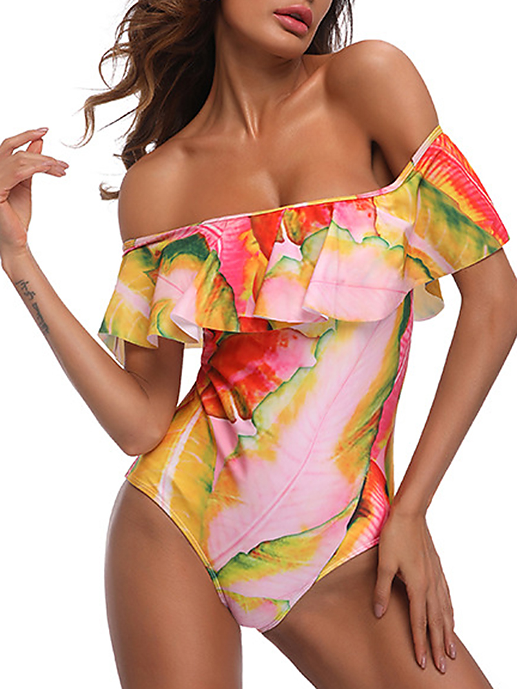 Lotus Leaf Sleeve Printing With Padding Wireless One Piece Swimsuit Swimwear For Women