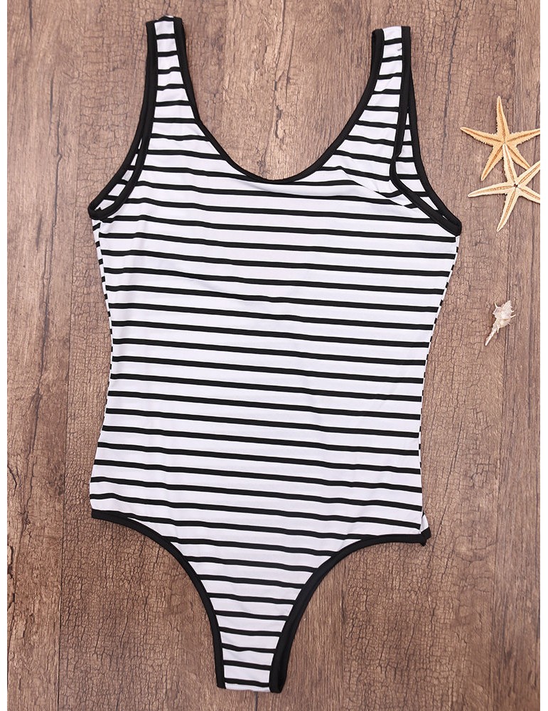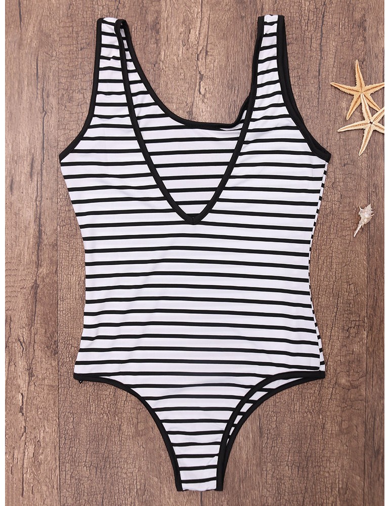 Striped V Blackless Comfortable One Piece Swimsuit Swimwear For Women