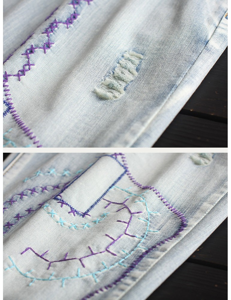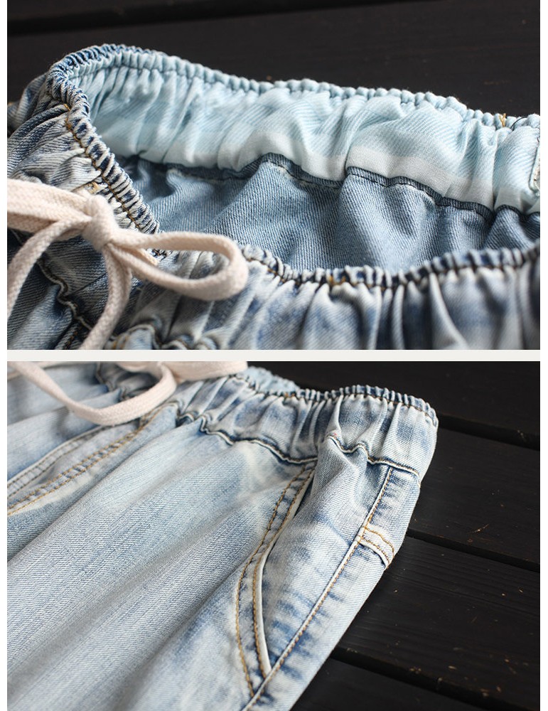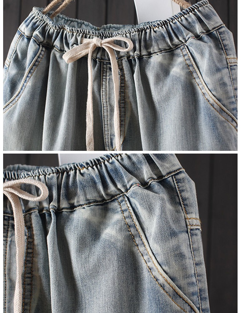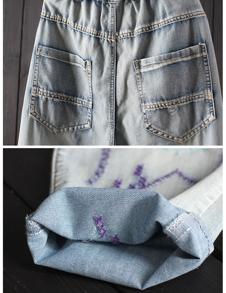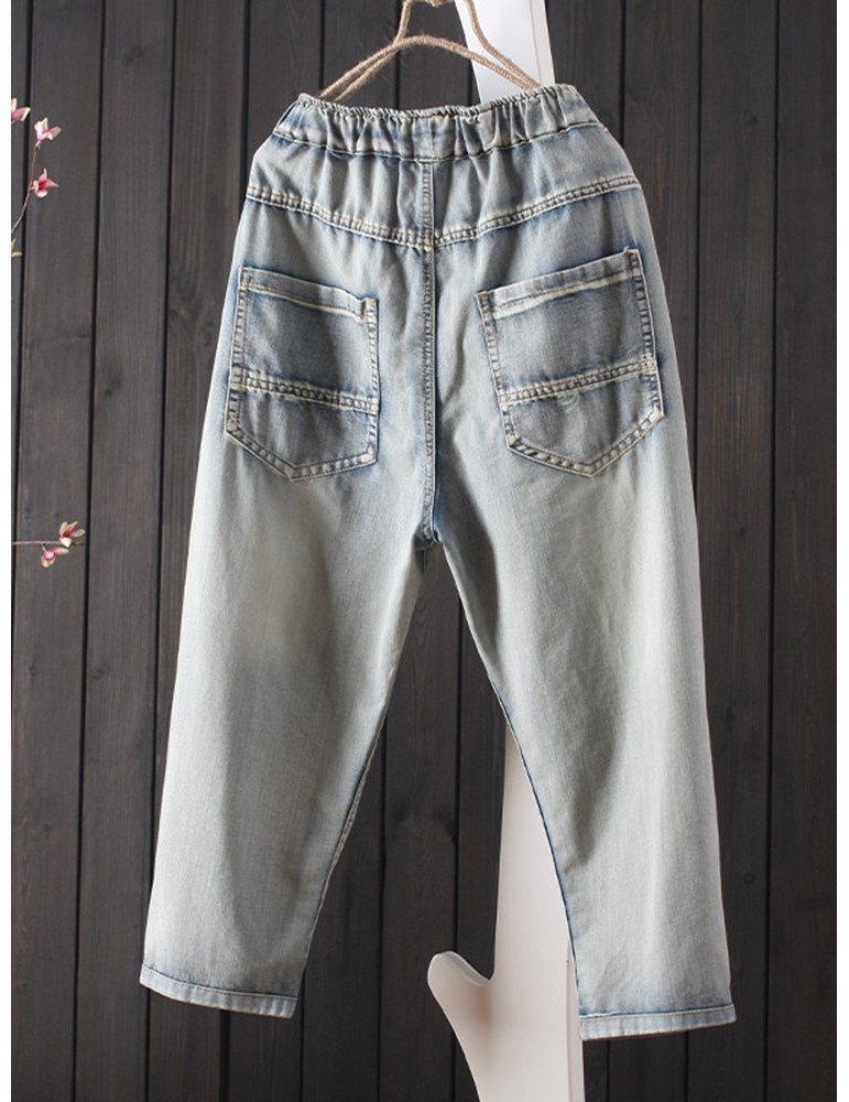 Embroidery Harem Elastic Waist Casual Jeans