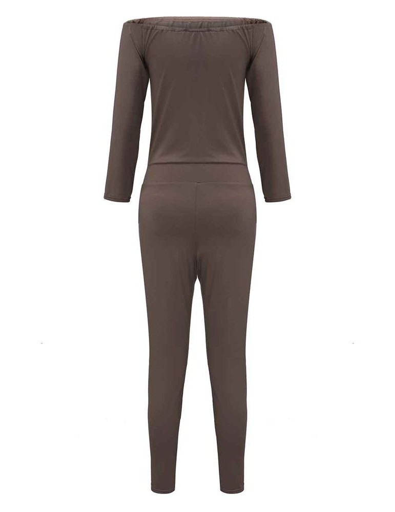 Off Shoulder Solid Long Sleeve Sexy Women Bodycon Jumpsuit