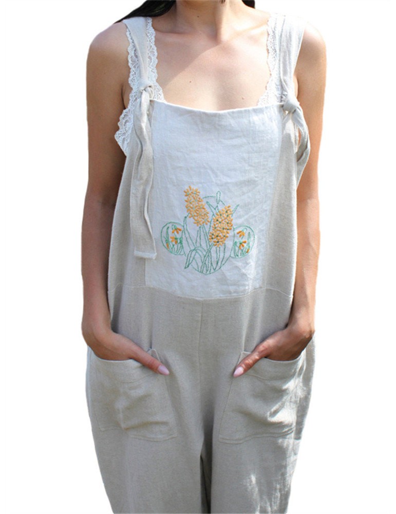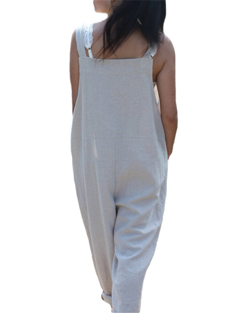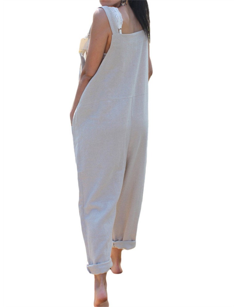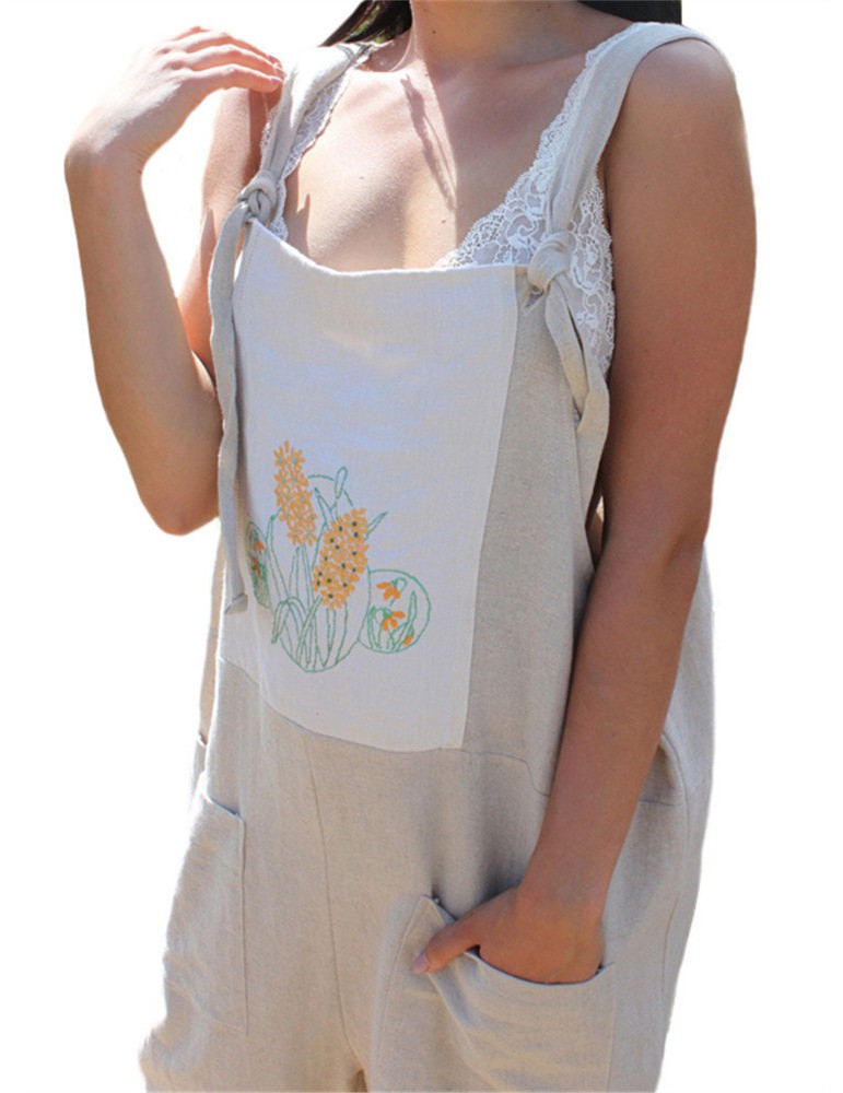 Print Pockets Wide Leg Harem Straps Jumpsuit