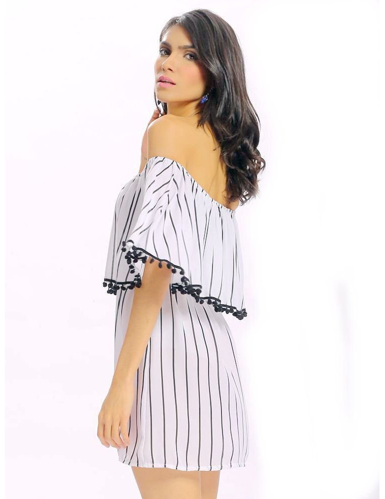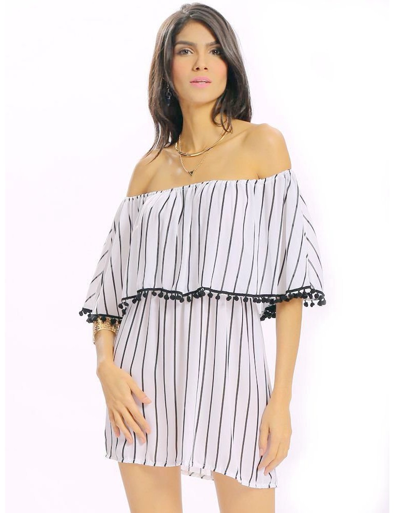 Women Sexy Off-shoulder Stripe Backless Loose Half Sleeve Mini Dress