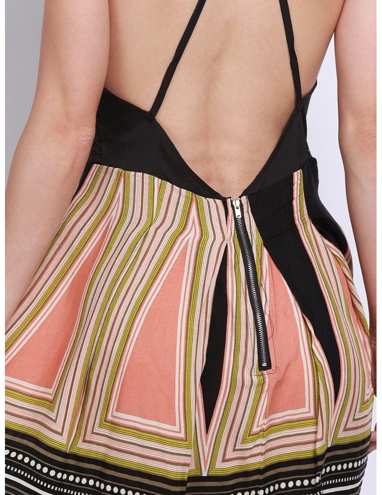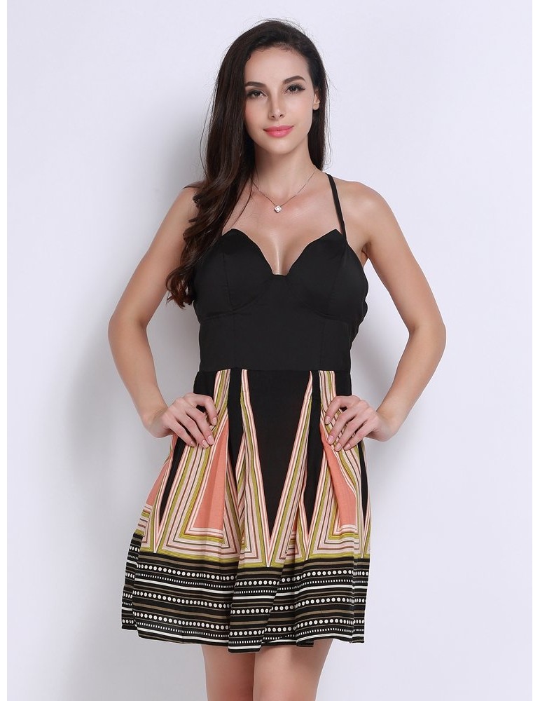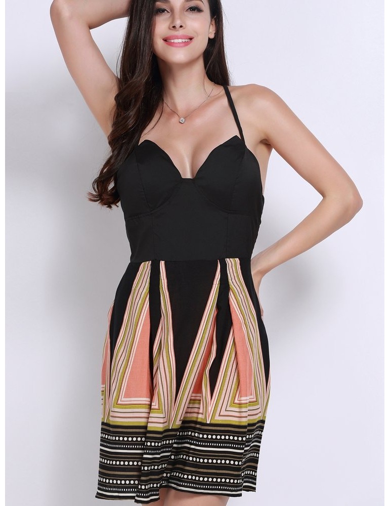 Women Sexy Backless Geometric Pattern Camisole Mini Dress