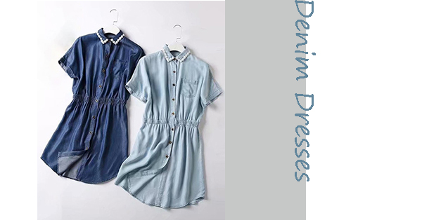 Denim Short Sleeve Botton Fly Turn-down Collar Casual Dresses