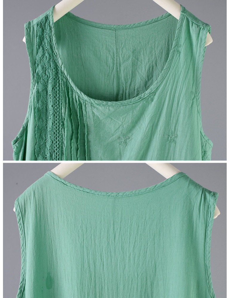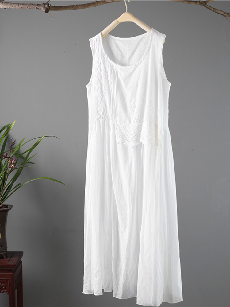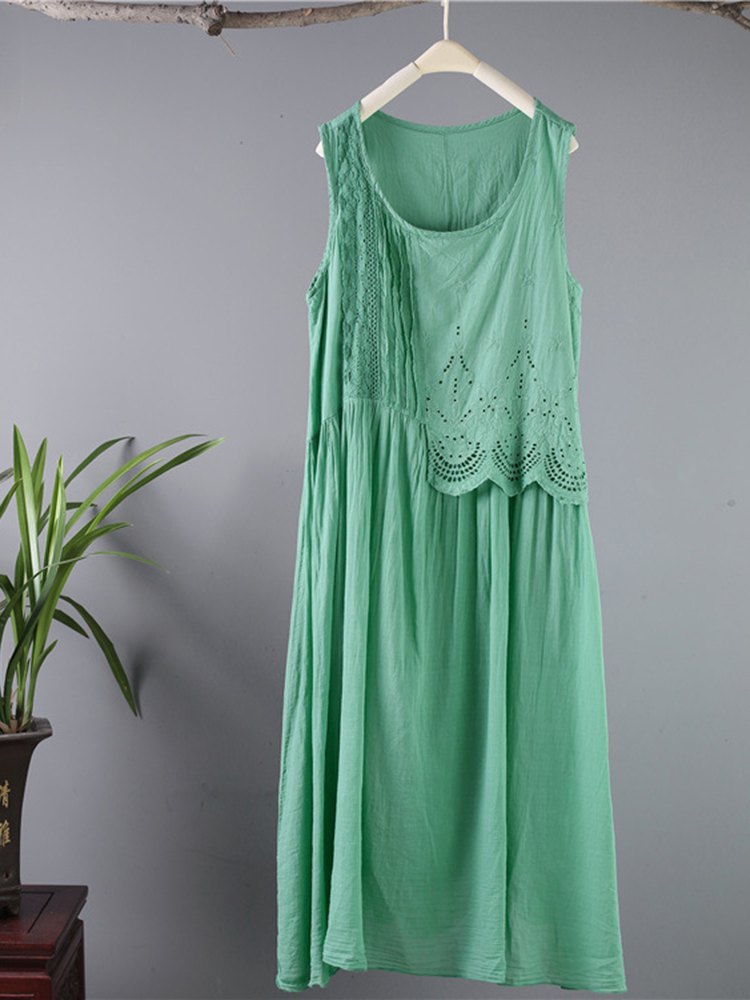 Casual Hook Flower Hollow Out Cotton Sleeveless Tank Dresses