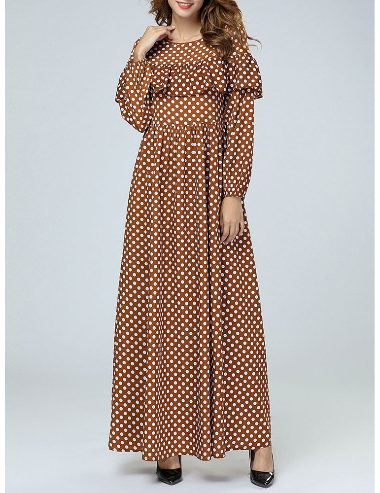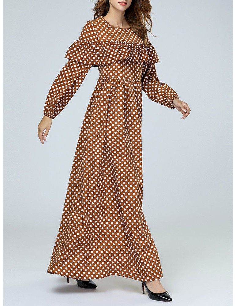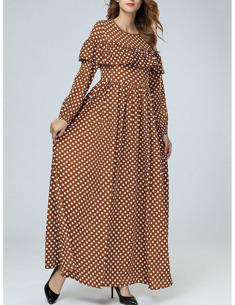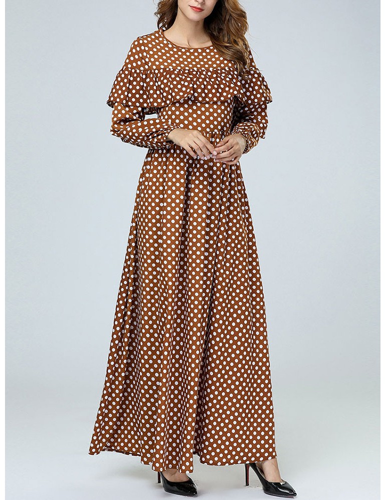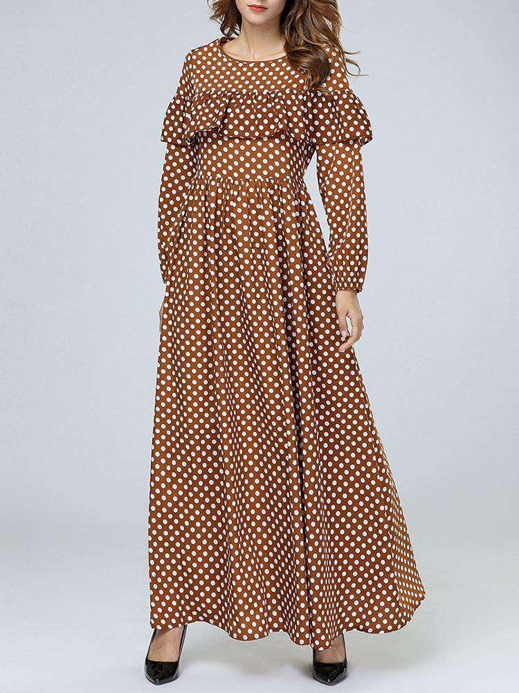 Polka Dot Long Sleeve Casual Big Wing Maxi Dress