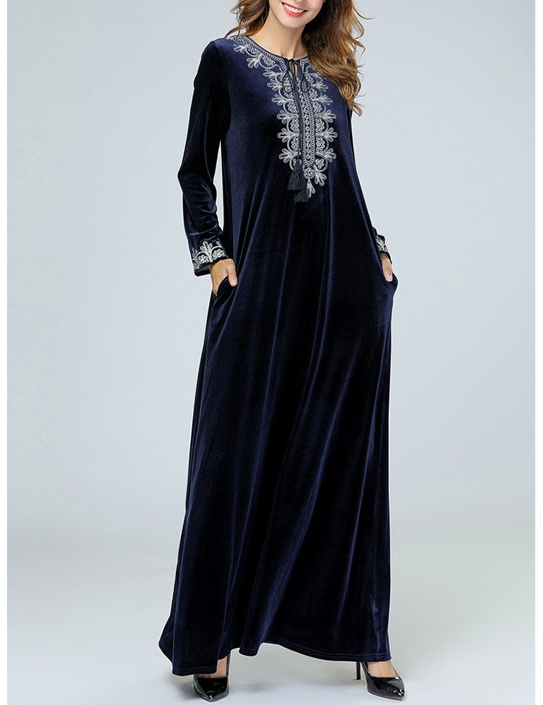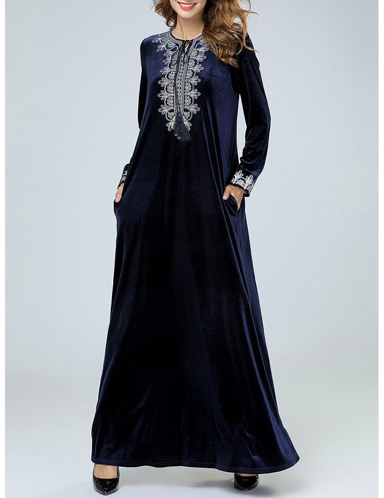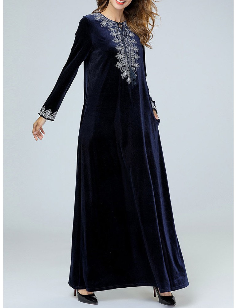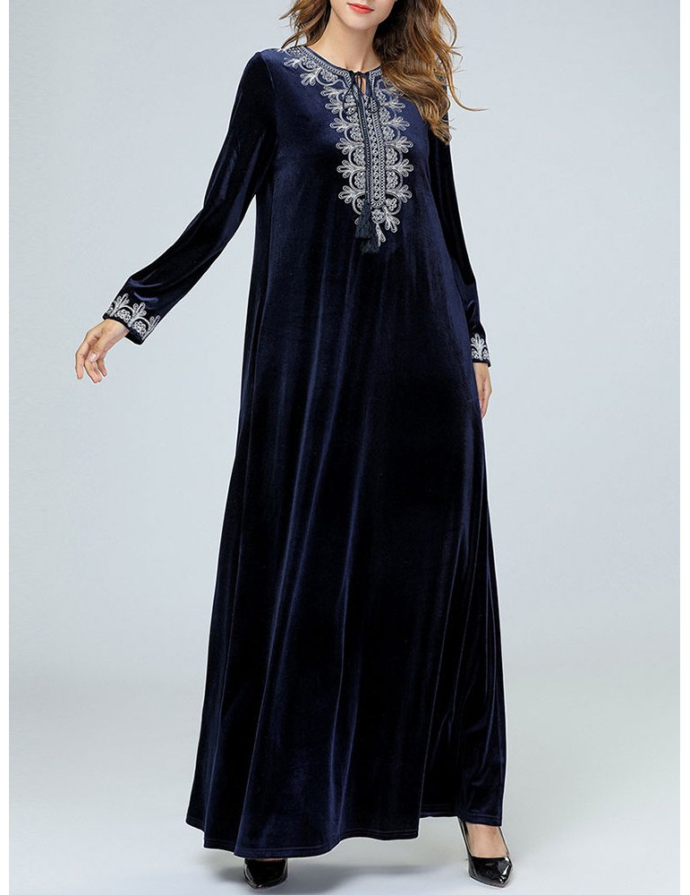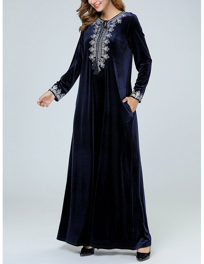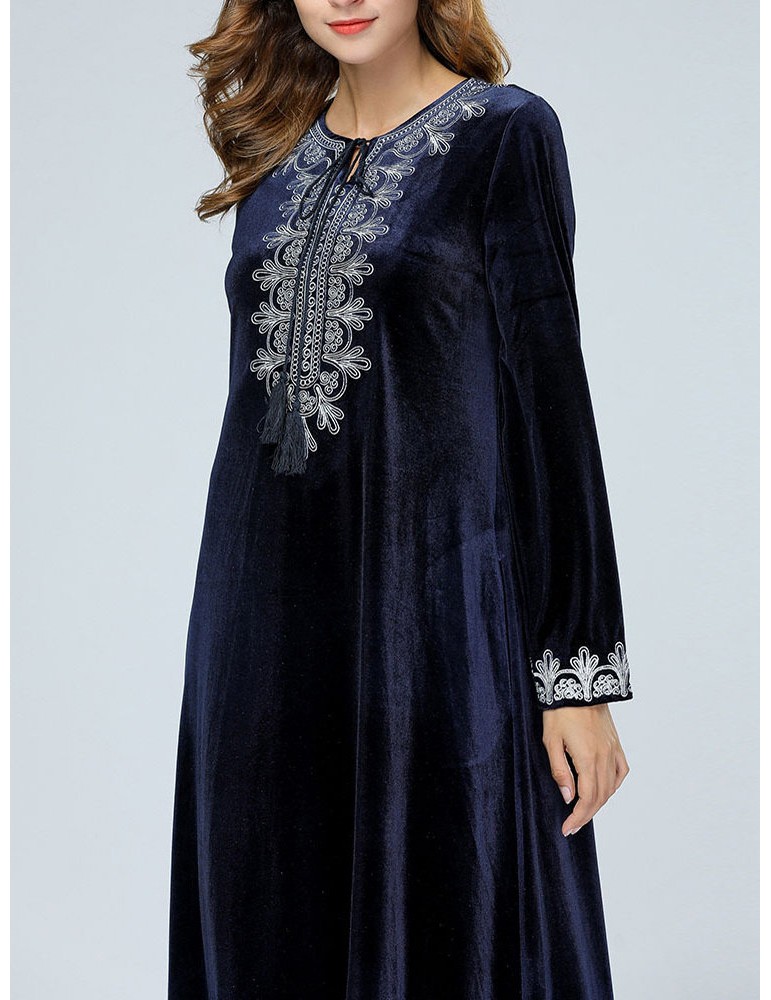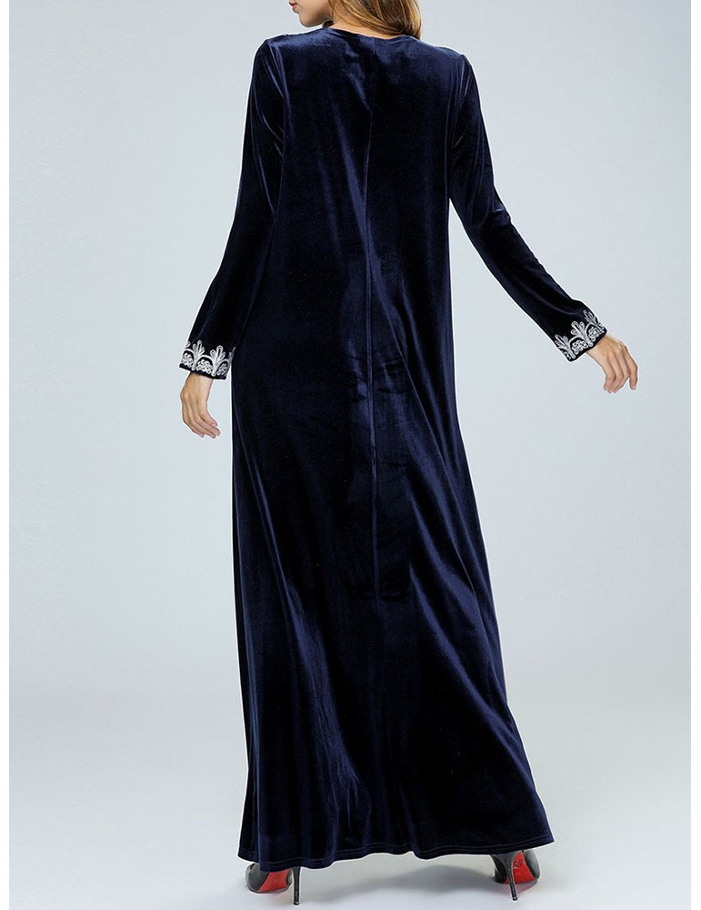 Elegant Muslim Velvet Embroidery Maxi Dress