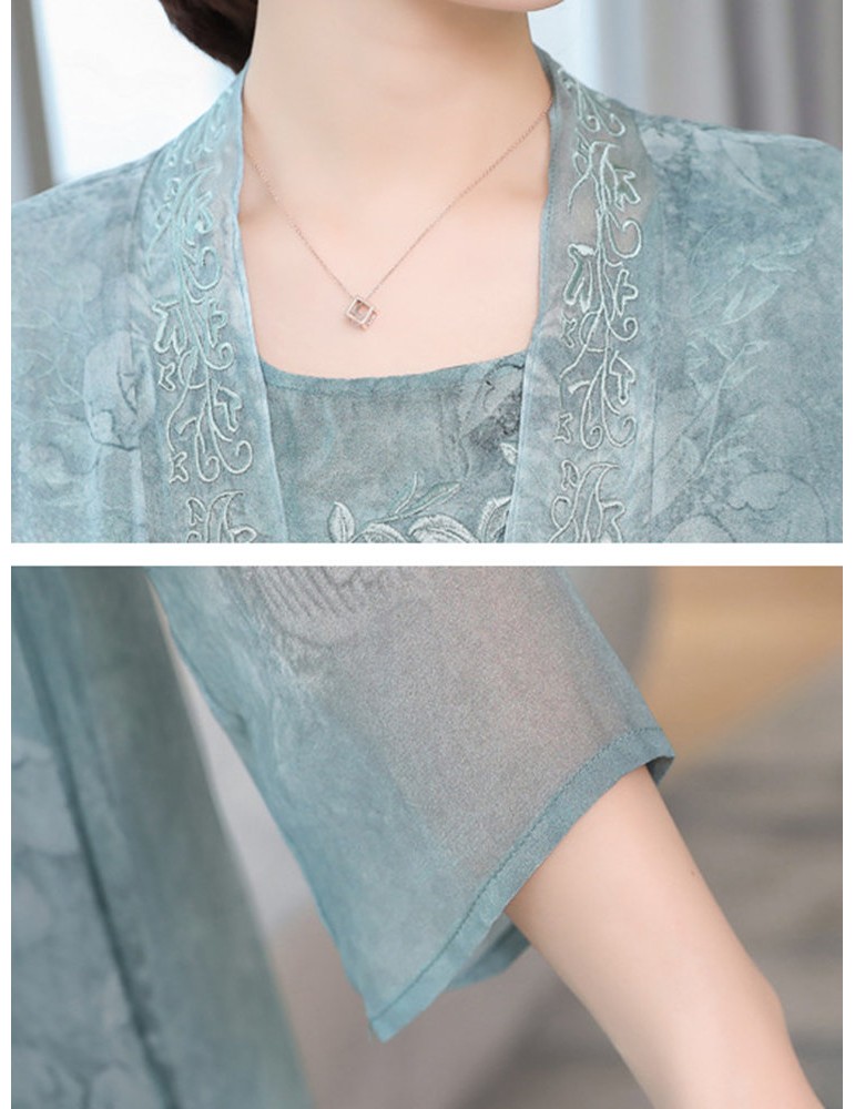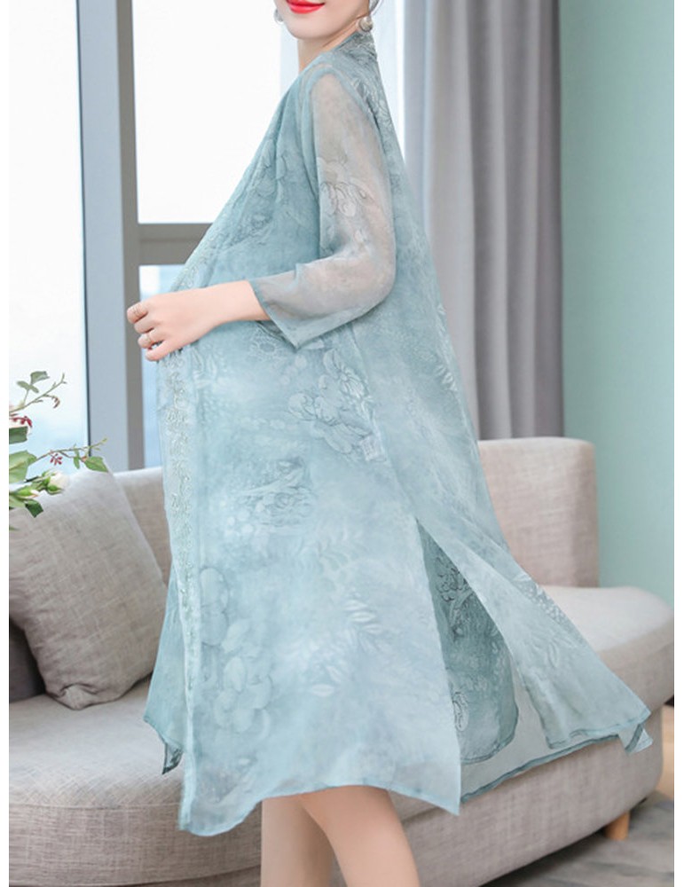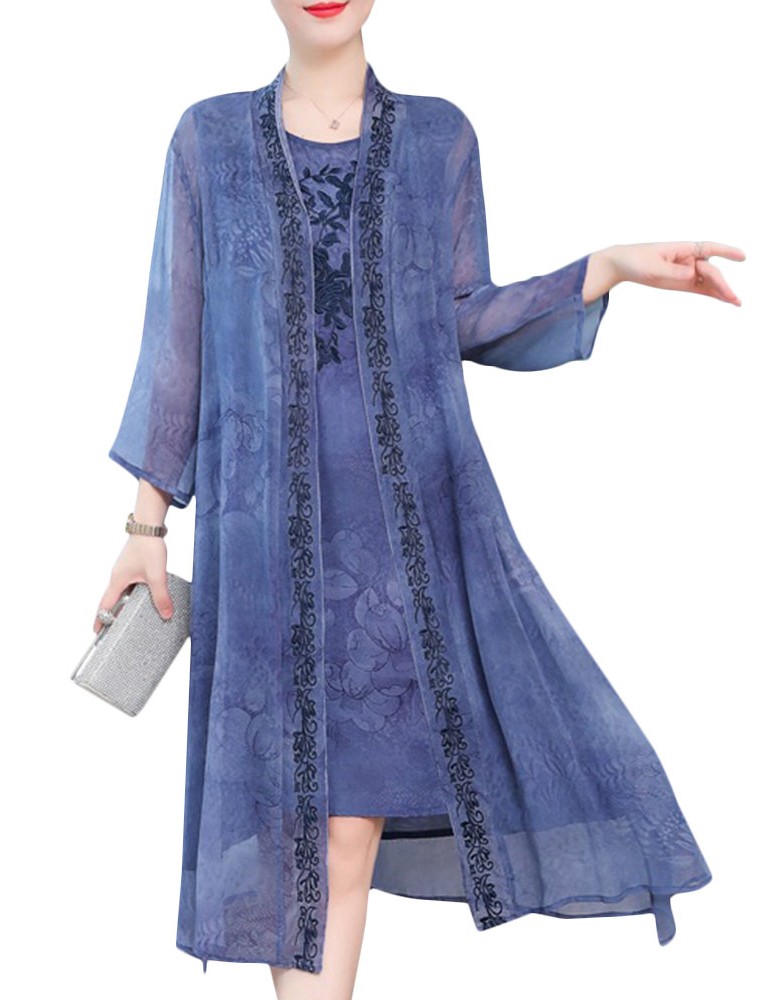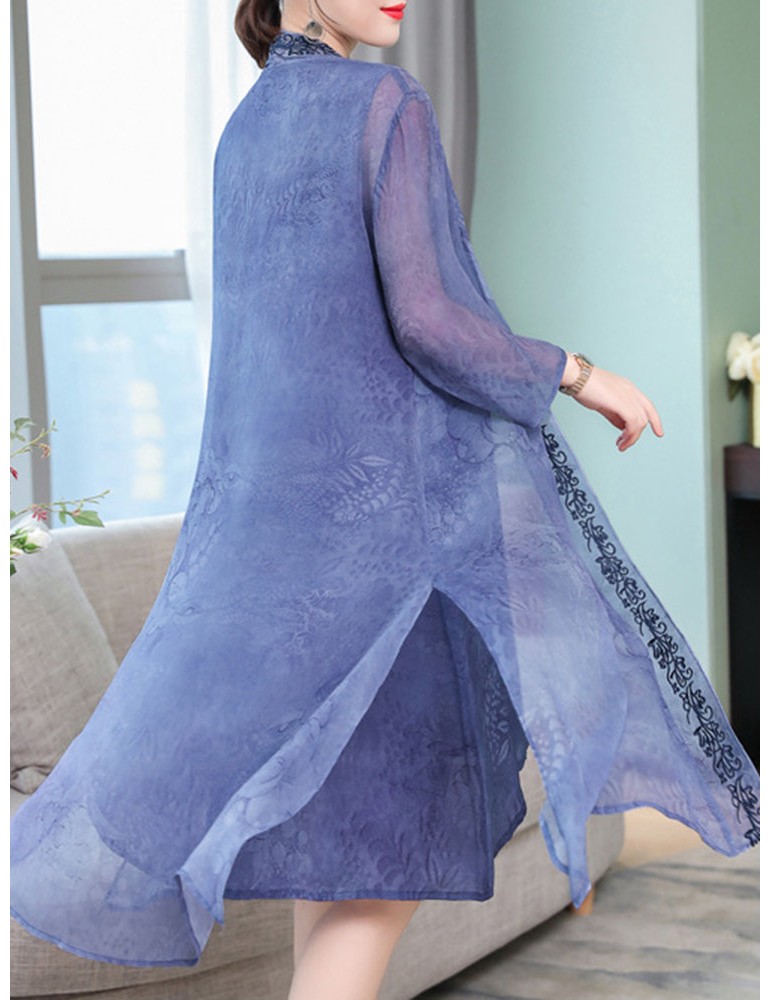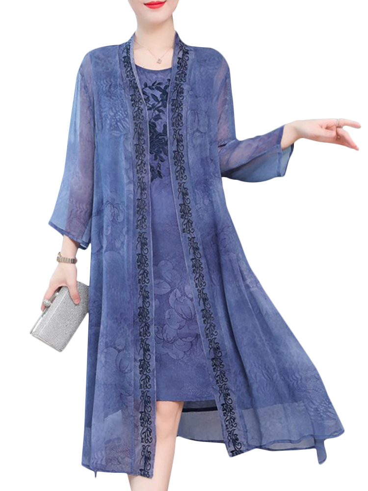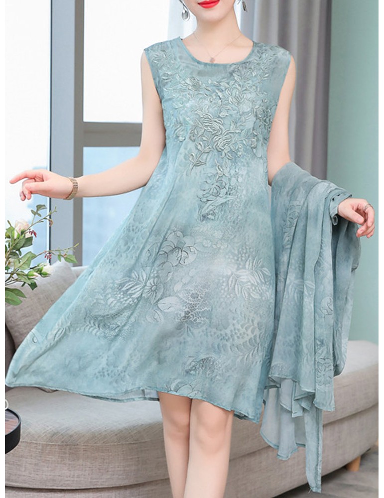 Floral Embroidered Jacquard Loose Vintage Two Pieces Dresses