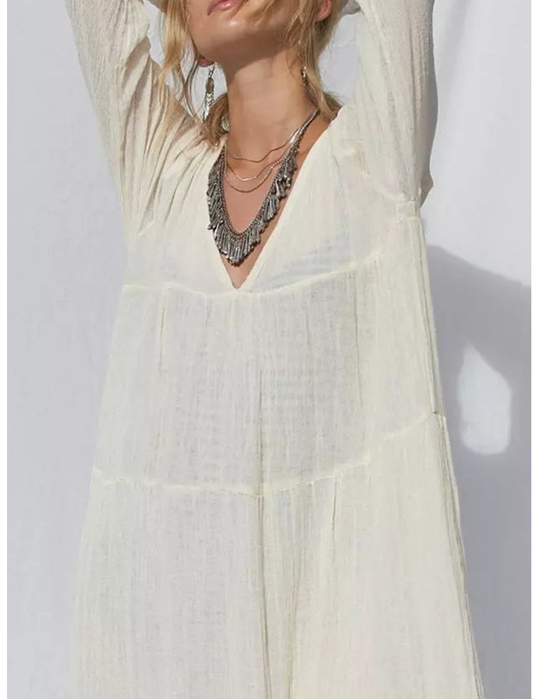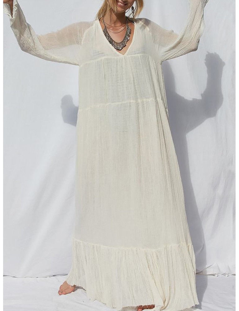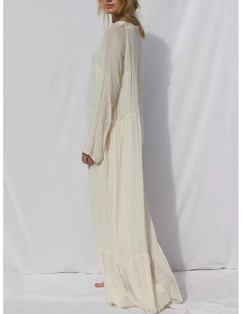 Solid Color Loose Long Sleeve Bohemian Maxi Dress For Women