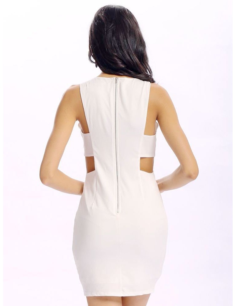 Women Sexy V-neck Bodycon Sleeveless Solid Color Mini Dress