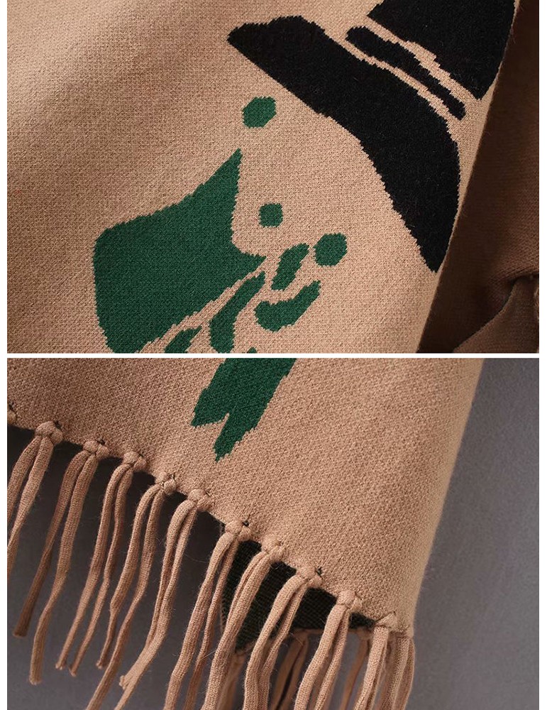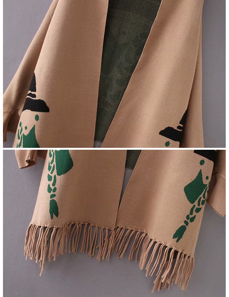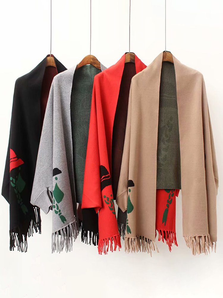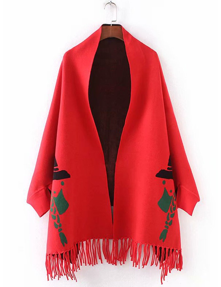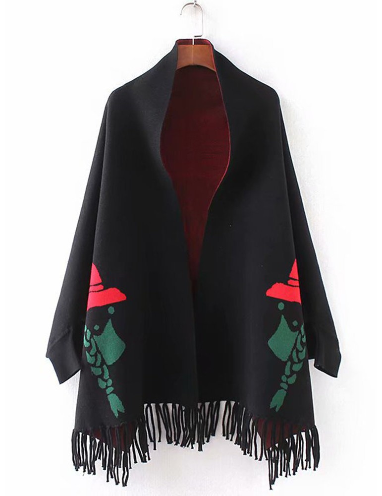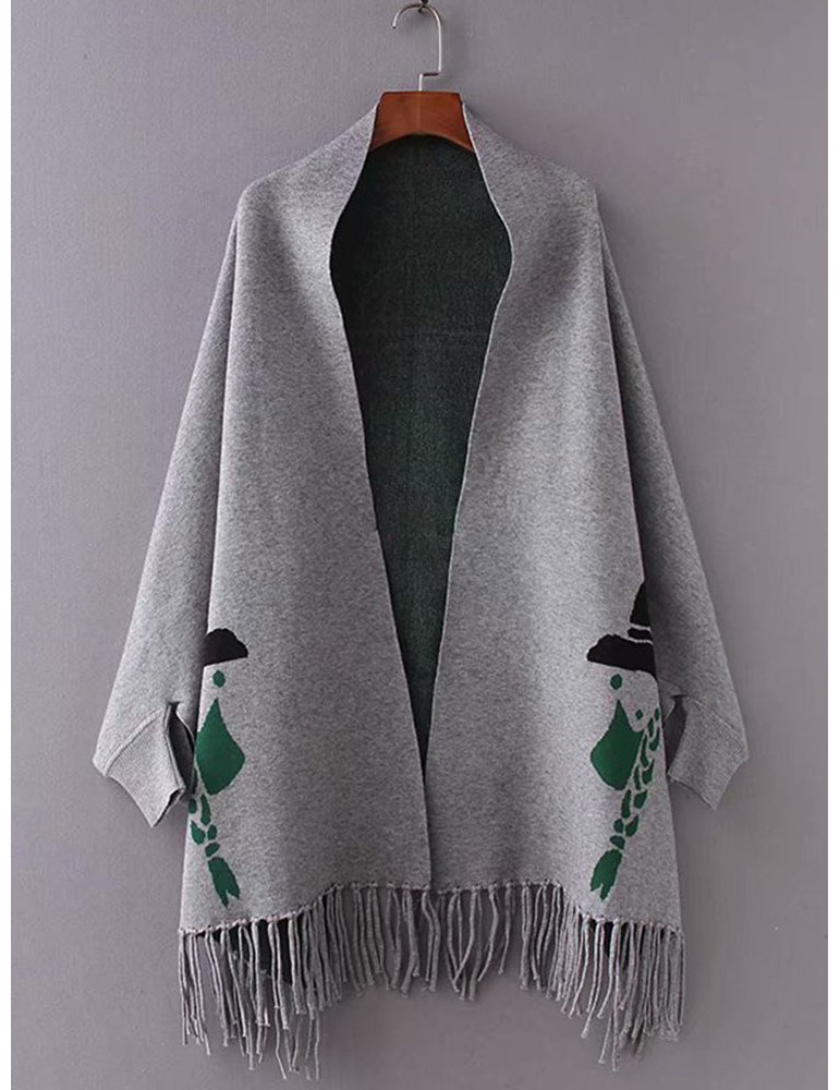 Print Tassels Asymmetrical Elegant Shawl Coats