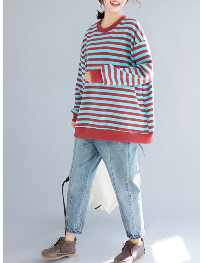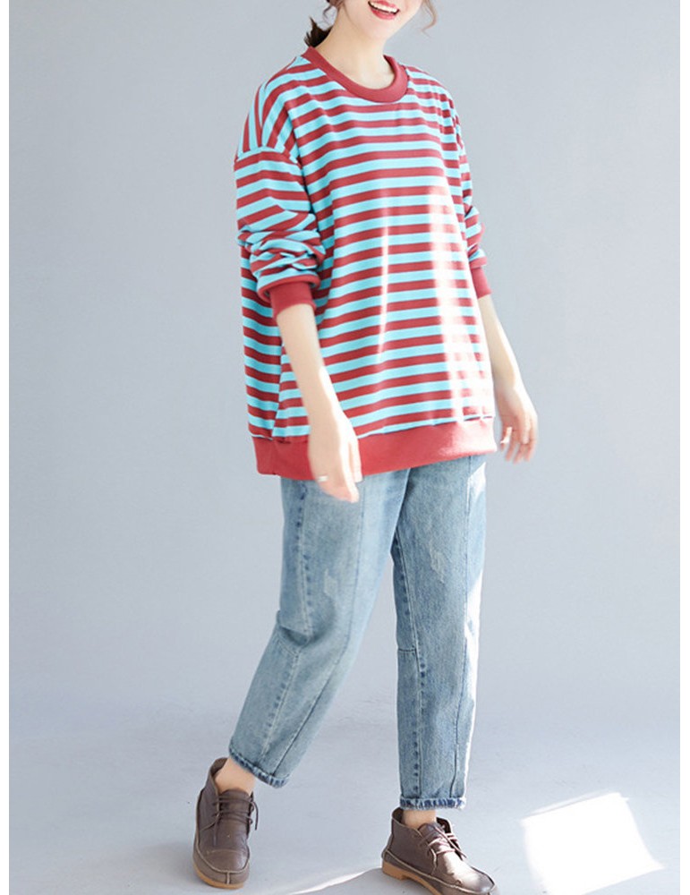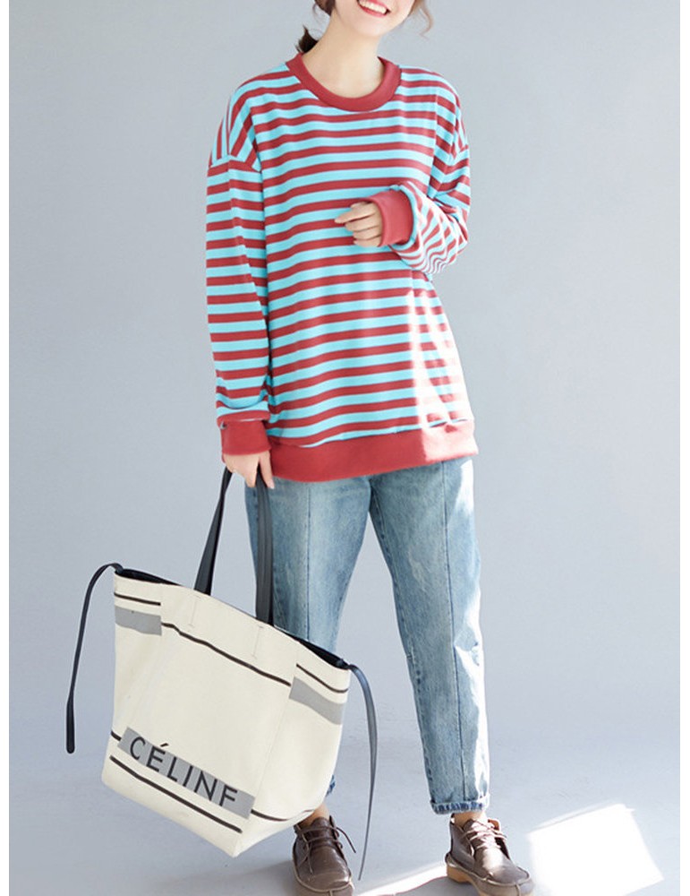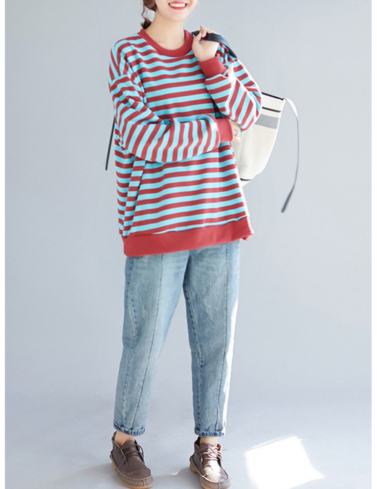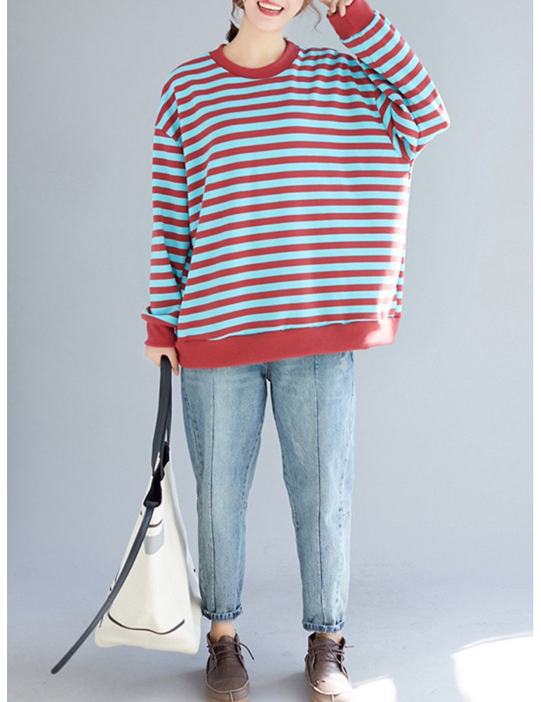 Casual Striped O-neck Long Sleeve Sweatshirt